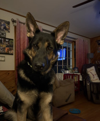 Heidi is a shelter dog. She is afraid of people noises and EVERYTHING. She loves me, her dad and her brother… and we love her tons!!