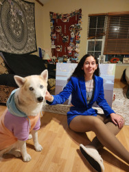 Her most unique quality is her business-card energy. Helsinki has her own “Chief Bark Officer” cards, and she hands them out with her presence—people stop us everywhere. A quick walk turns into a mini meet-and-greet: strangers ask her name, take photos, and insist on a card. It happens constantly—every 1–2 minutes outside. She was even featured in the Chicago Tribune, but her real headline is this: she’s an angel who changed my life and makes others feel seen. Everyone wants her—and she knows.