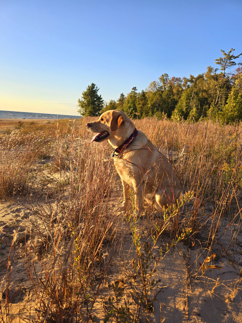 Hemi enjoying a Lake Michigan sunset