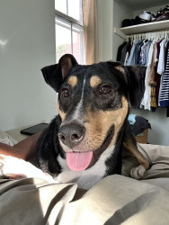 Hendrix is 40 pounds of pure love and excitement. He loves long hikes, oversized dog toys and chasing every squirrel he can find.