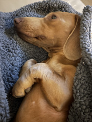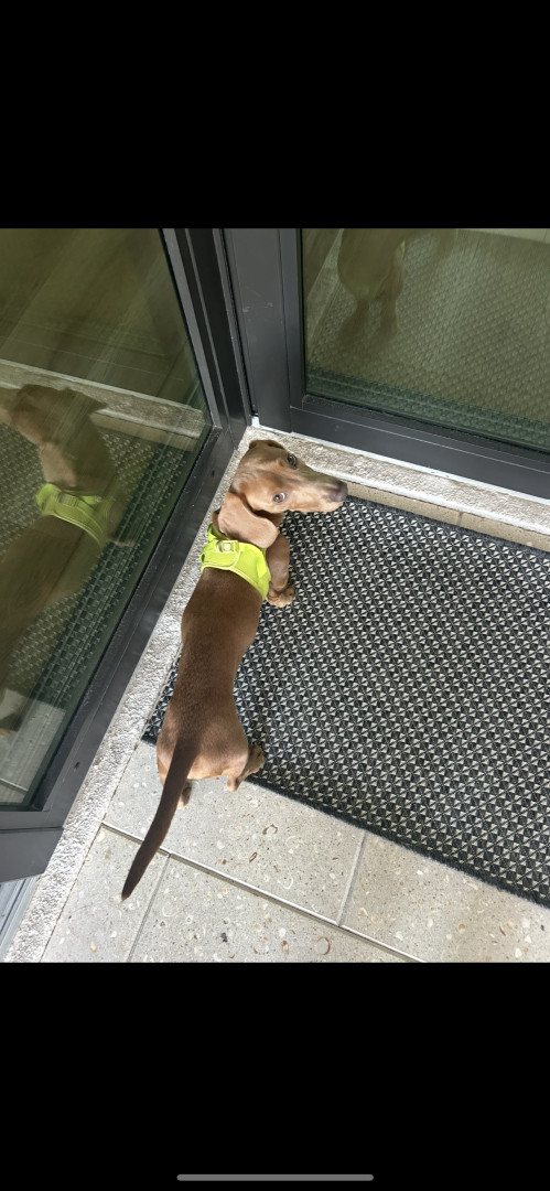 He is a very special miniature dachshund who we are training to become a service/therapy dog for children with special needs.