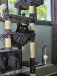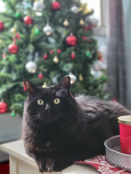 Henny is a big tom cat/ maine coon mix with huge yellow eyes. He has a small white patch with a black/brown coat. He has a huge personality!