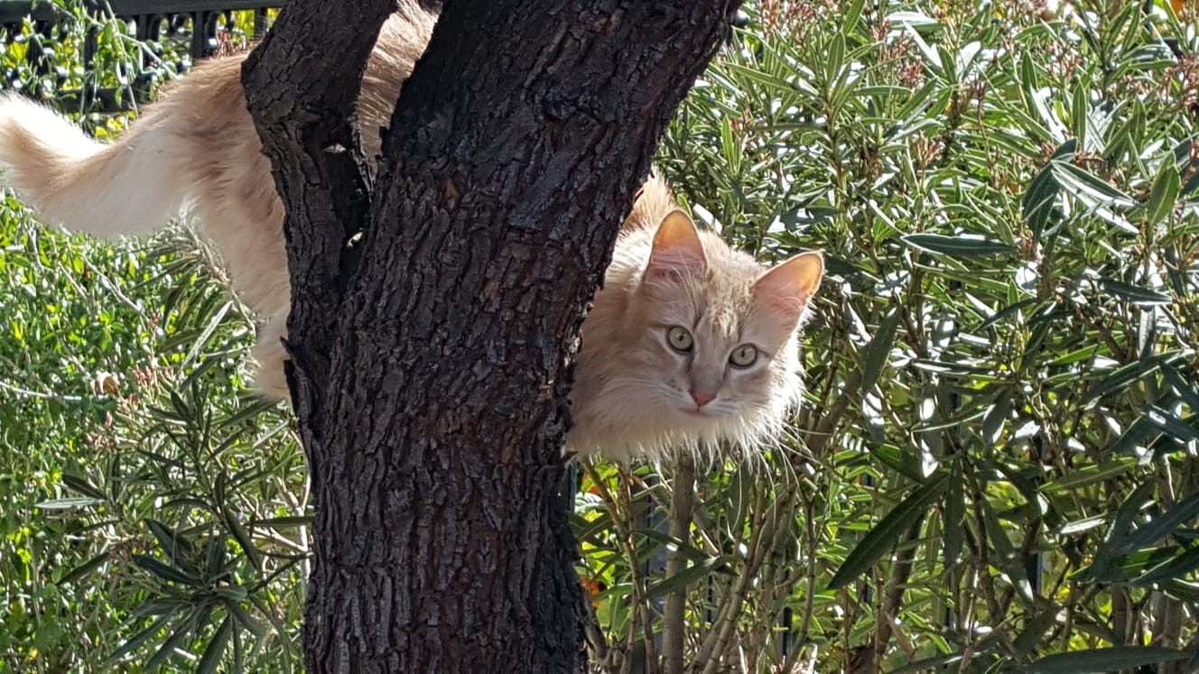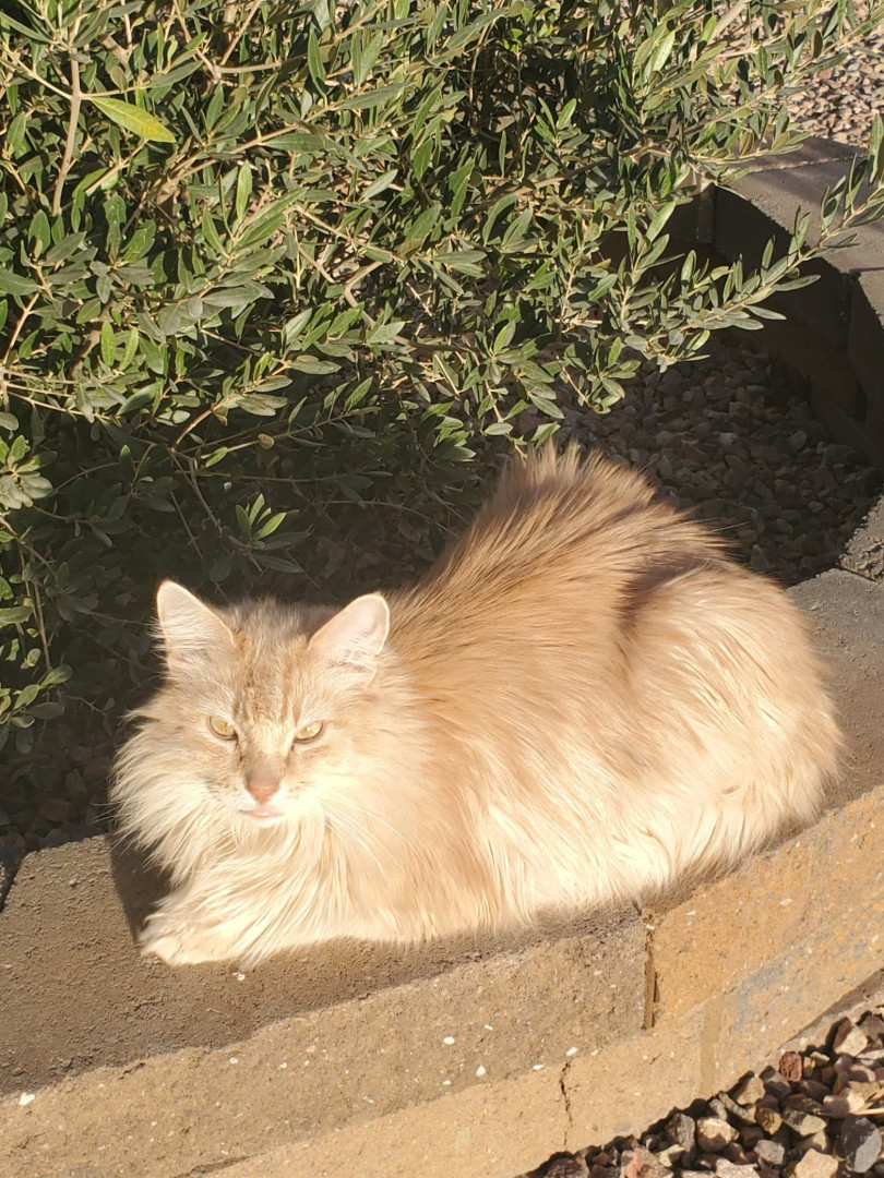 Henry was a kitten who showed up one day and he made friends with our dog. He adopted our family and been with us for 7 years.