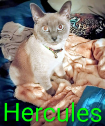 Hercules is an domestic shorthair bluepoint Siamese indoor cat that is toilet trained and also loves car rides