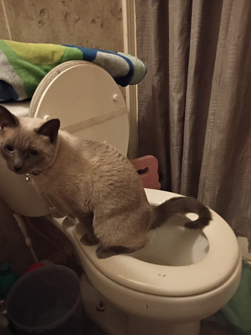 Hercules is an domestic shorthair bluepoint Siamese indoor cat that is toilet trained and also loves to go on car rides
