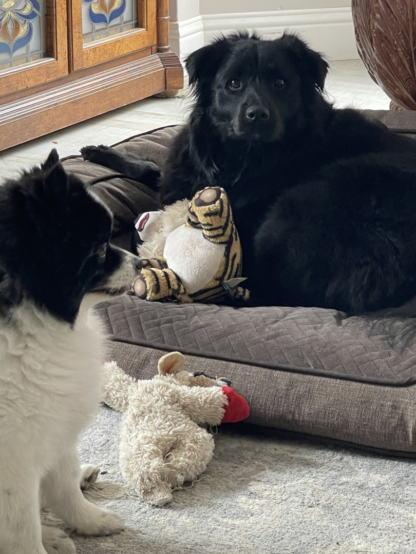 Learn MoreHe loves his stuffed Lamb and of course chasing and catching his rubber balls! His favorite treats are his chicken sticks