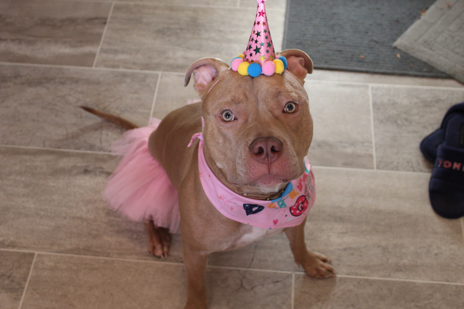 Pitbull, turned 2 on December 13th. She’s super duper smart and sweet, and wants nothing but loving (and treats).