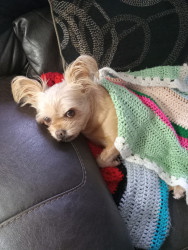 Holly is the sweetest dog. She loves people and she loves to take walks. When she looks at you her face is so sweet.