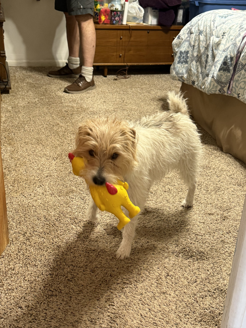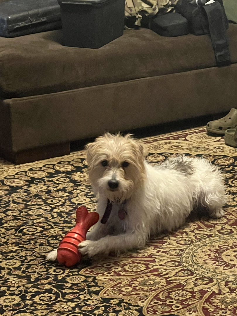 His personality, he puts himself to bed when he thinks it’s time to go to bed. Plays fetch and there is never a dull moment you never know what he’s going to do next.