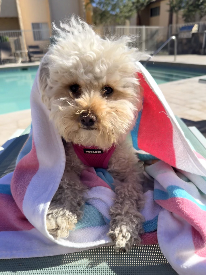 Honey’s most unique quality is her lightning-fast backyard zoomies. This little pup races in joyful circles, clearly aware of—and energized by—an audience. To finish the show, she proudly demonstrates her hopping skills, launching herself off ledges like a true entertainer.