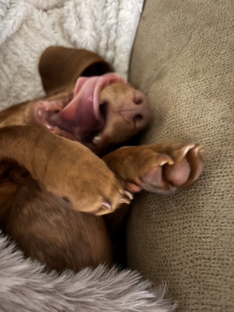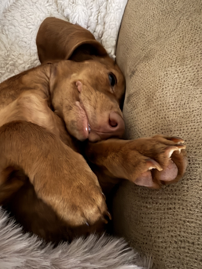 Because she’s a mini Dutch hound and she’s a girl and she’s adorable and she’s a good girl she listens she makes your heart happy