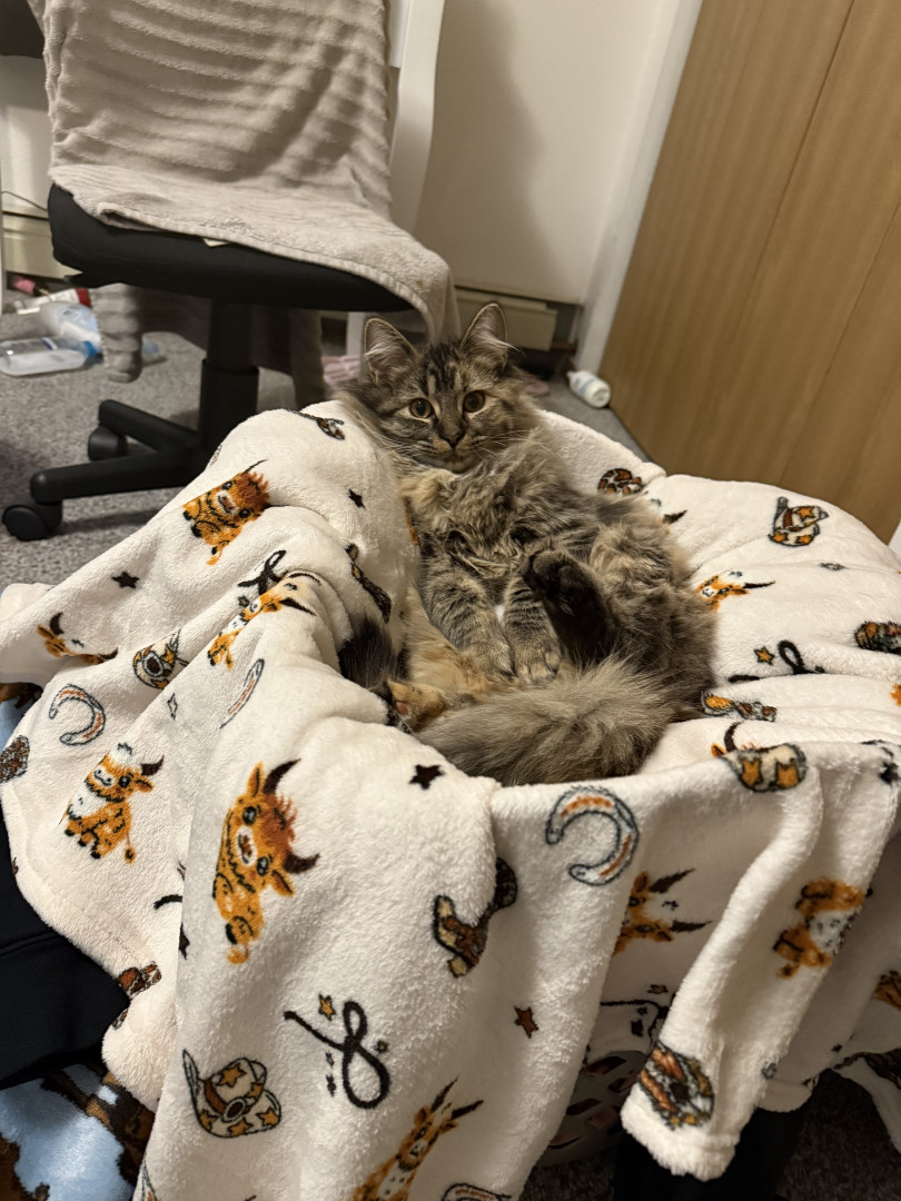 she’s a little ball of energy, she sleeps all day and runs around at bed time we never get bored with her around