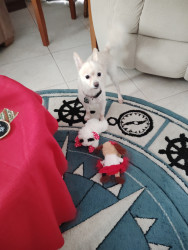 Learn MoreHoney's favorite toy is her little football, named "ball"! But she also likes her hamburger named "Hamie!"She also likes her mellon toy, named "Mellie." Her favorite treat is her green Dingo sticks but mini size milk bone is close!