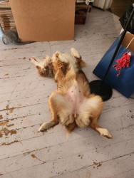 She has had a very hard life. We rescued her from a county rescue and she did not even know what a toy was and didnt know what a treat was. She had her under coat finally back and feeling awesome after we had a battle with having seziures also. She is on meds and now does not have them anymore. She is a very good girl and very sweet and loveable.