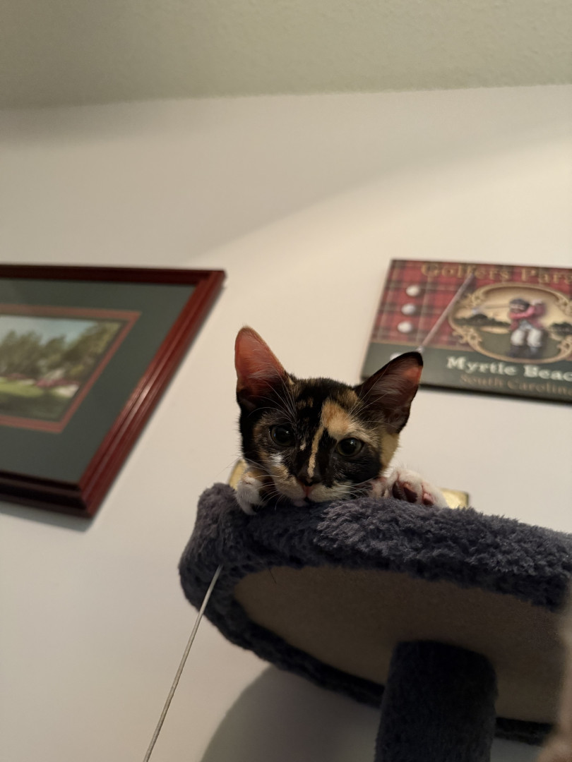 honeybee goes NUTS for this little rainbow fuzzy ball, it’s disgusting and crusty now and she’s had it since she was a kitten but it’s basically the equivalent of a baby blanket she will chase this ball around the house up the stairs and fight off our 65 lbs dog for this little ball she also steals my steak of my dinner plate and claws my hands if i try to give any of her cat siblings a treat before i give her one