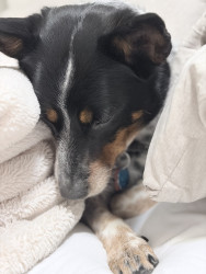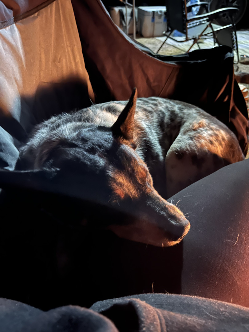 She is very smart, loving, never will leave your side, loves to burry her head under the blankets for comfort. Hope also needs her own camping chair for sitting by the fire with her mom. 💕