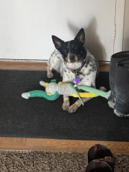 Learn MoreShe will play with anything she can find. Her go to treat is anything peanut butter.