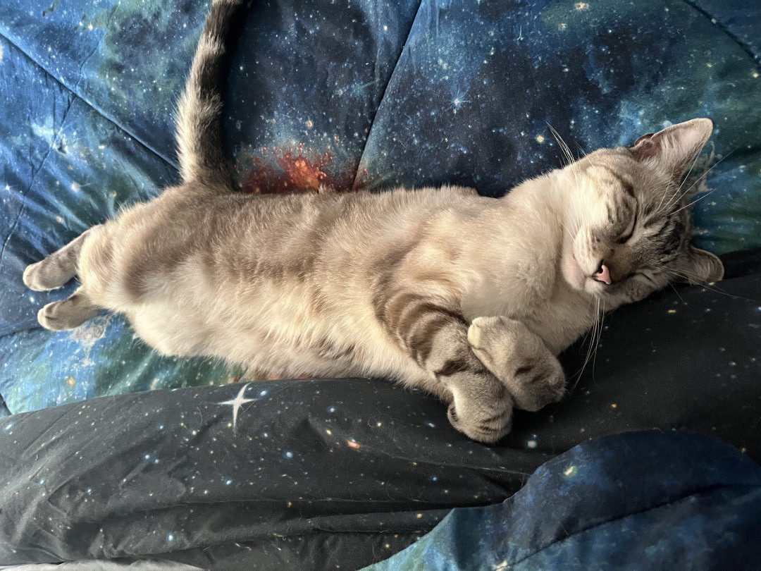 He’s just that adorable cat who wants his belly rubbed and that smile of his