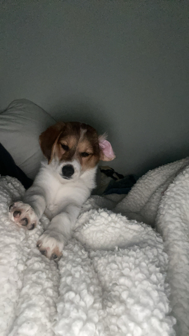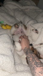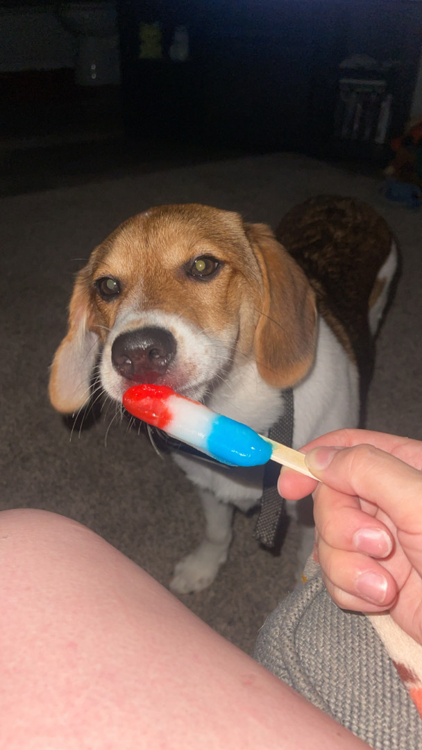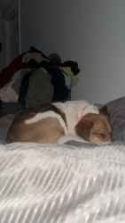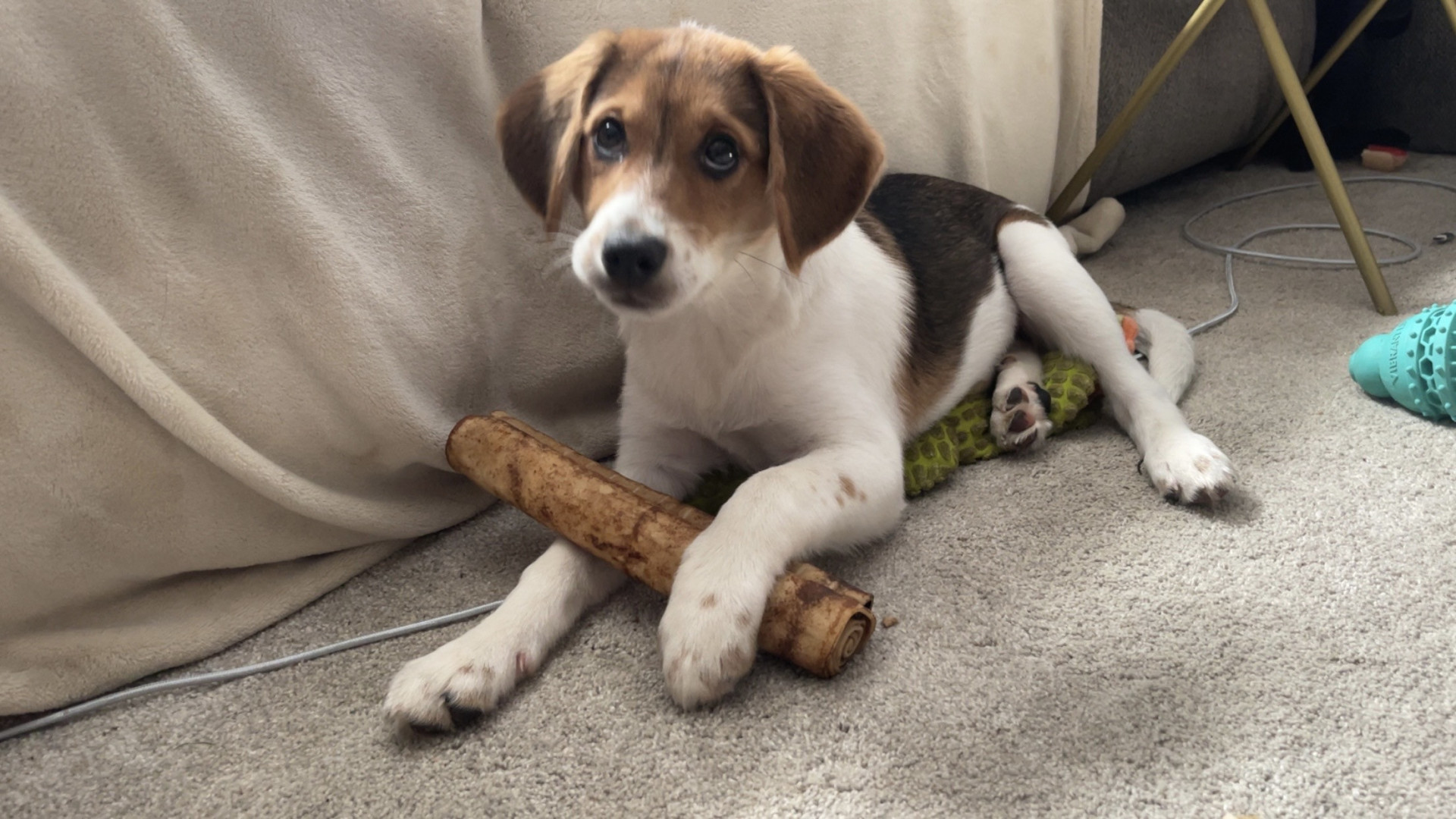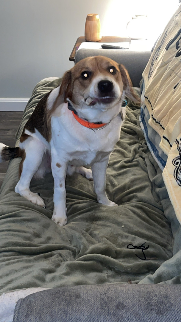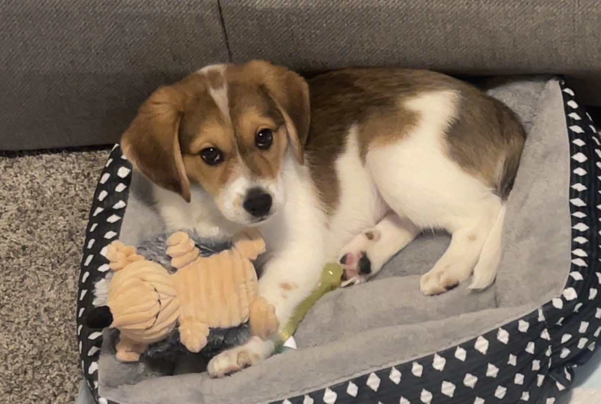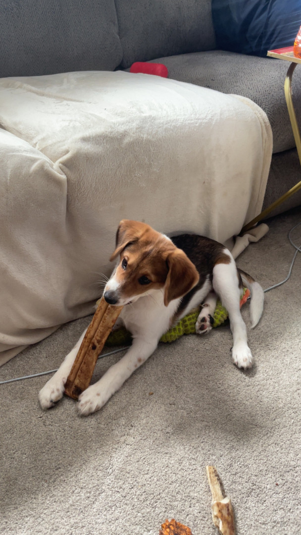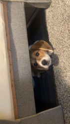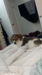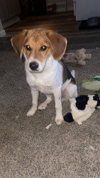Hoss is a beagle mixed with American Eskimo, he is 11 months old. He loves treats, running around like a crazy pup, loves taking walks!