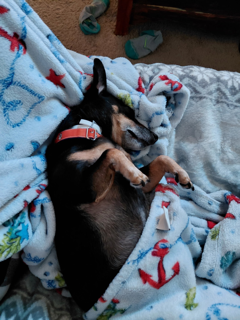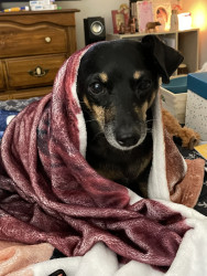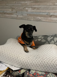 Huck has the greatest smile, he is so friendly, he loves laying with you but you better make sure you cover him up because he loves being close and under covers.