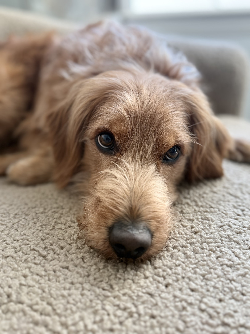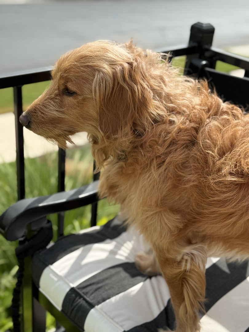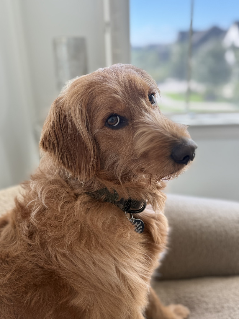 Hudson is hands-down the sweetest goldendoodle on the planet! He adores everyone he meets, but babies? They’re his absolute favorite!