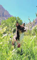 She's been with me since she was about 3 weeks old, we are truly bonded. I was sadly in an vehicle vs pedestrian accident while walking with her. While I was unconscious, she ran home and was able to get my husband to the scene of the accident. She stood by my side while recovering and until this day, she has never left my side. She's truly my (her mommas) hero.