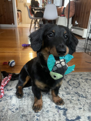 Learn MoreIndys favorite toy is weirdly a water buffalo horn…he carries it room to room and loves when we stuff treats in it! He also loves any ball but will hide them under the couch and bark until we get them for him. His favorite treat is duck jerky! He also loves having an egg for breakfast with mom.