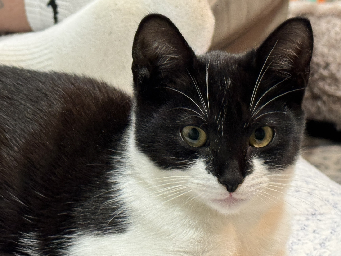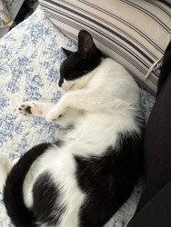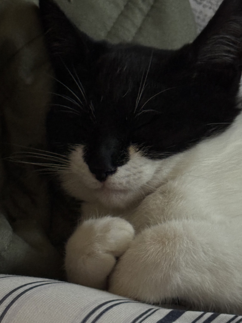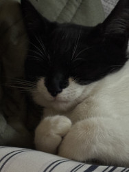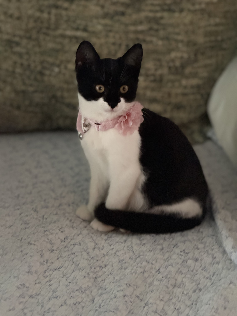 I love that indie looks like she had a mask on and looks like batman (girl) In addition, even though she’s quite shy, she is such a sweet and funny little cat. She loves climbing the xmas tree and also plays peekaboo.