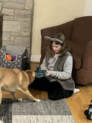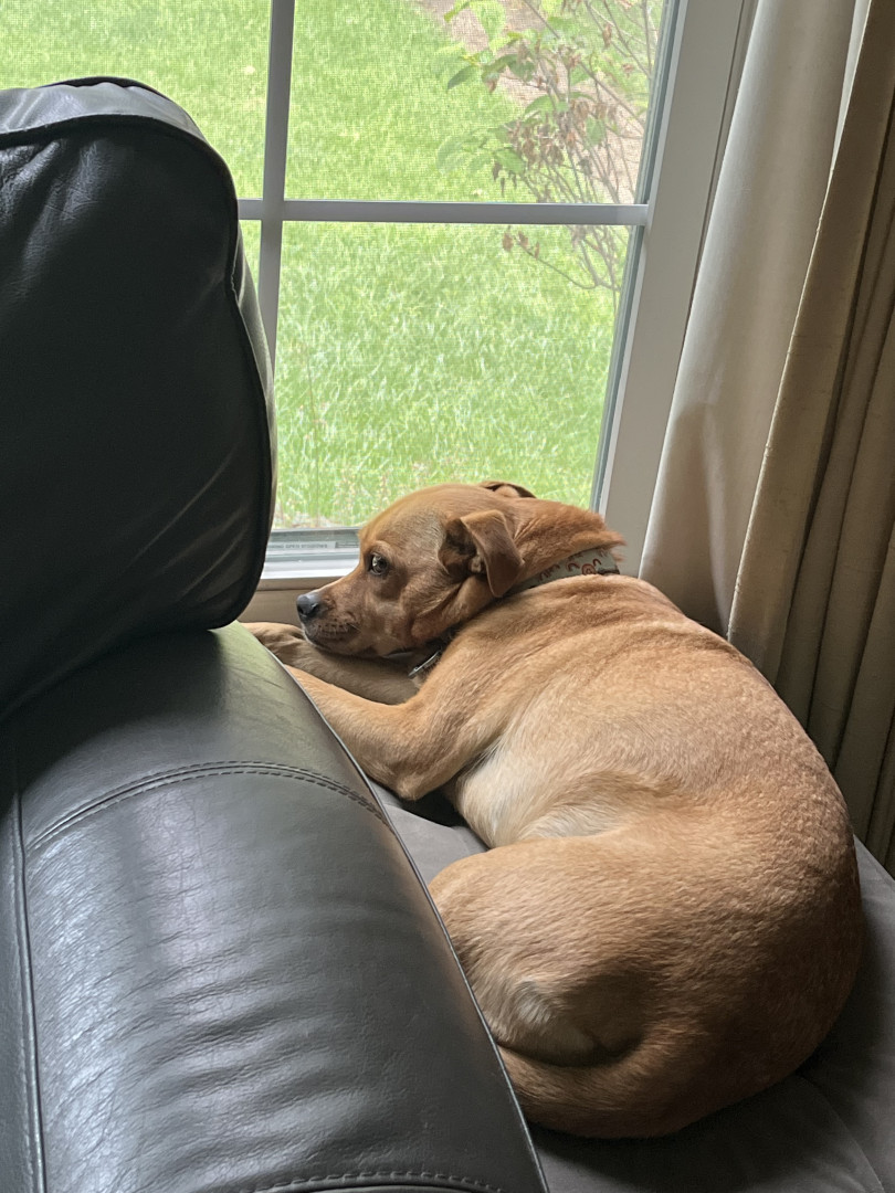 Indy is a quirky, sweet dog. She loves her people in all different ways. She waits at our back window to greet our neighbor everyday.