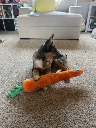 Learn MoreIndy’s favorite toy is his giant carrot, his giant lamby and his reindeer. His favorite treat is peanut butter bones!