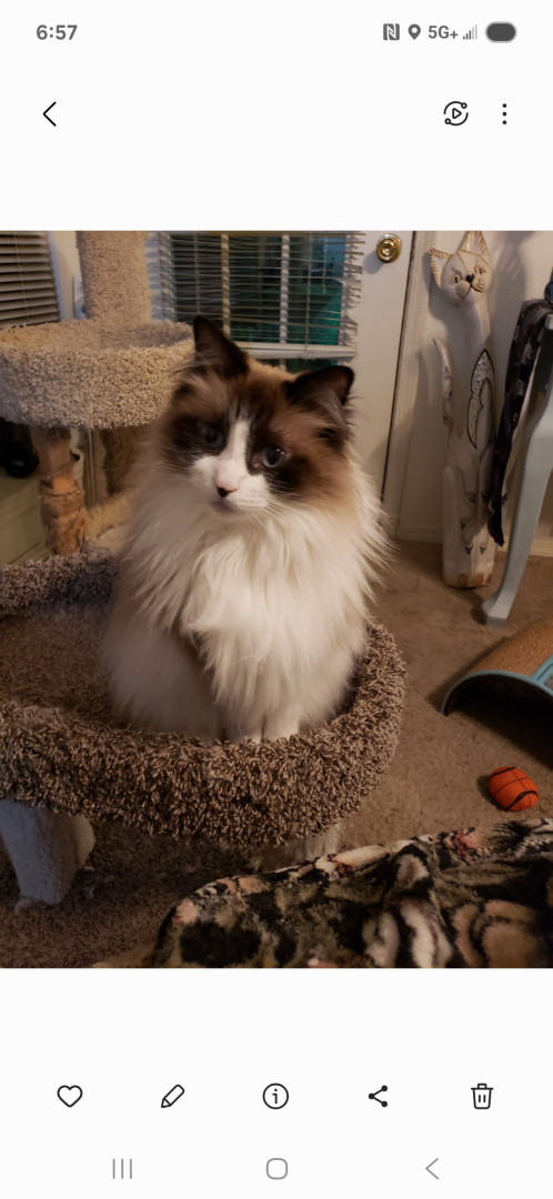 Fifty and very vocal. She sits on my lap and crawls up my chest and we talk to each other. I ask her how her day was and she answers me!