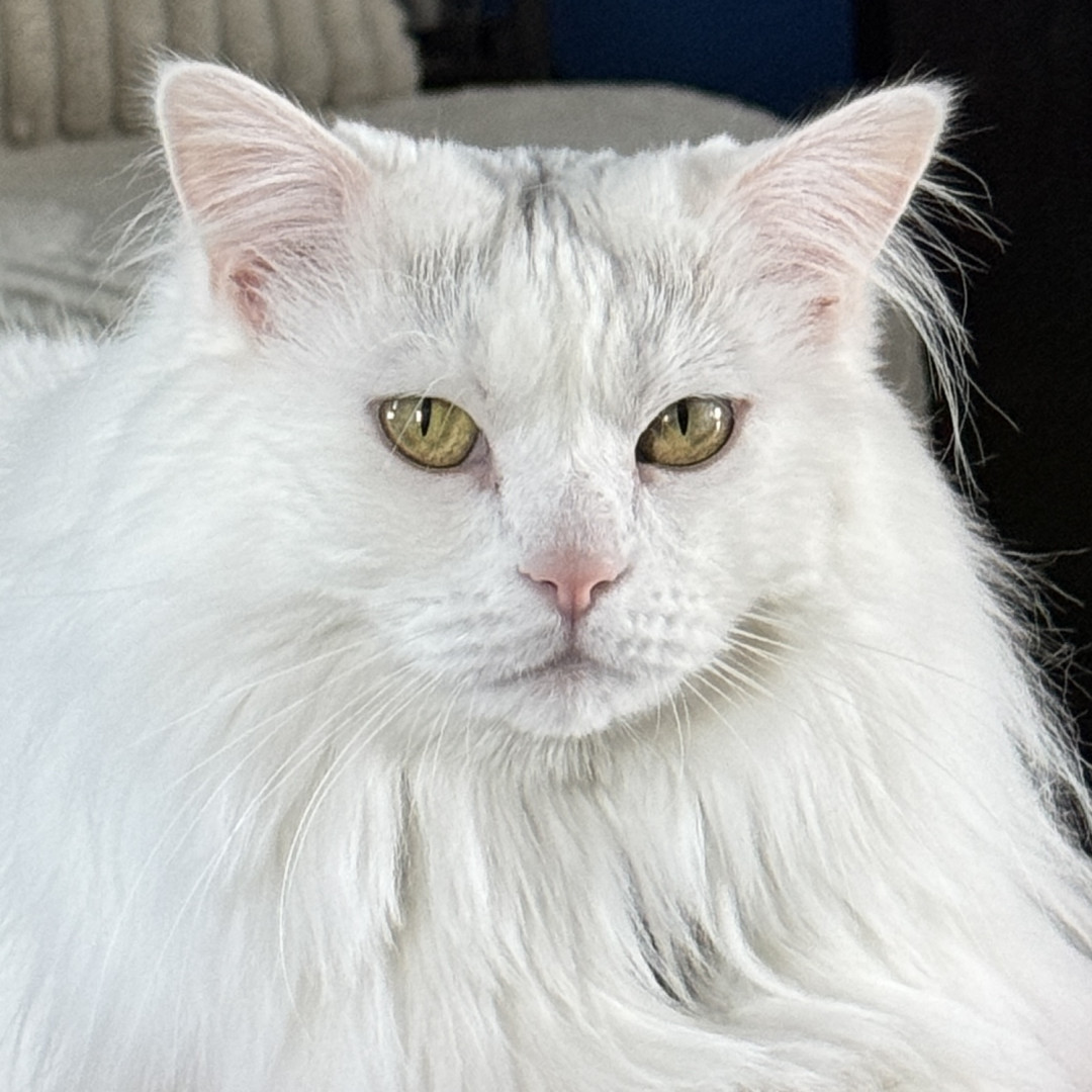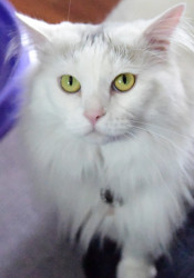 Isabelle was a white shorthair feral kitten when I got her at 8 wks old.She has grown up to be the best cat I have ever had.Loves everybody.