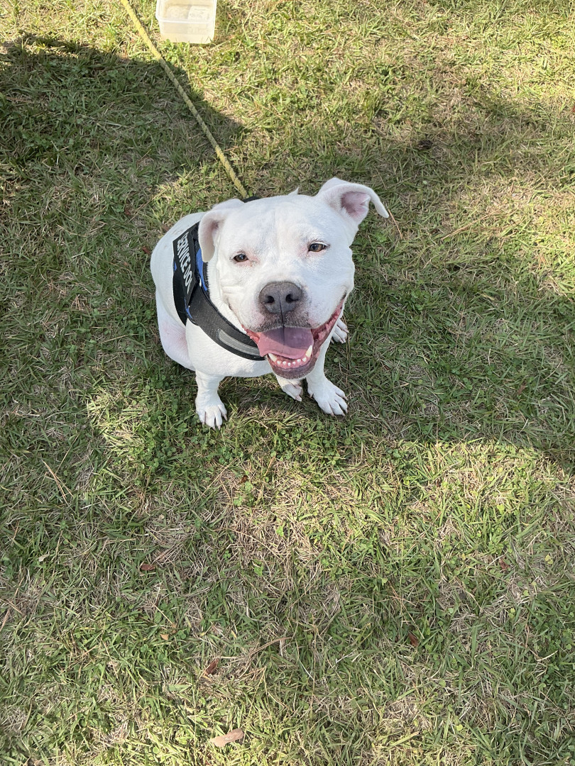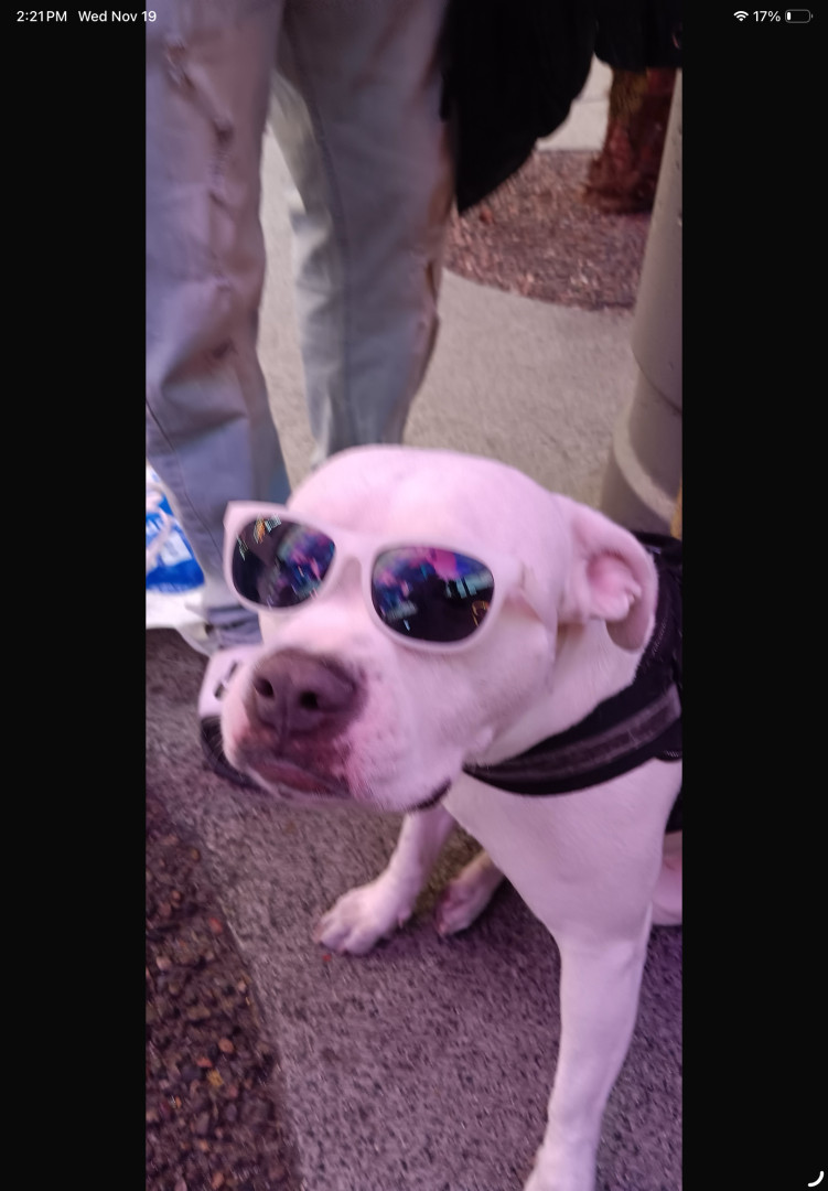 When I say she's almost famous I mean it! She has the most amazing smile and personality. When she smiled she takes your breath away because she smiles like a person from ear to ear! She can recognize dog people from 40 yards away and gets her butt wiggling as soon as she senses them. She has this aura about her that draws people in like gravity.