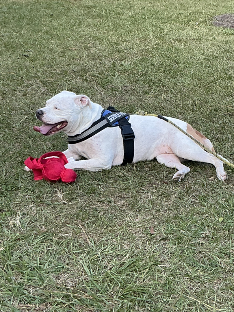 Isis has been my service dog since she was a year old. She's been my only friend, my child, and has spent 24 hours a day with me her whole life. We've crossed our country from California to Florida, Wisconsin to Texas together. We lived in vegas for 3 years and for dog lovers there's absolutely no way of NOT noticing her. Her smile is more infectious than any person's ever could be and we've met people from all over the world! She steals everyone's heart within the first 5 minutes of meeting.