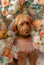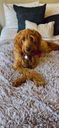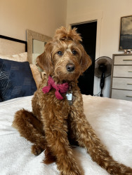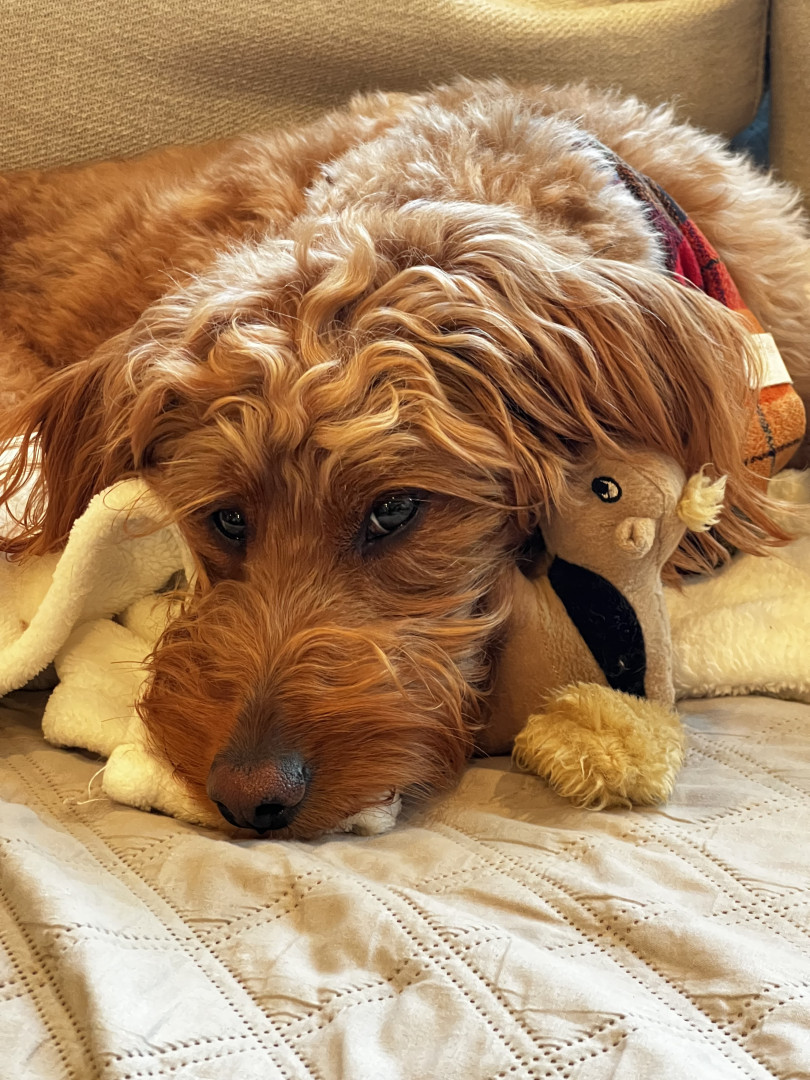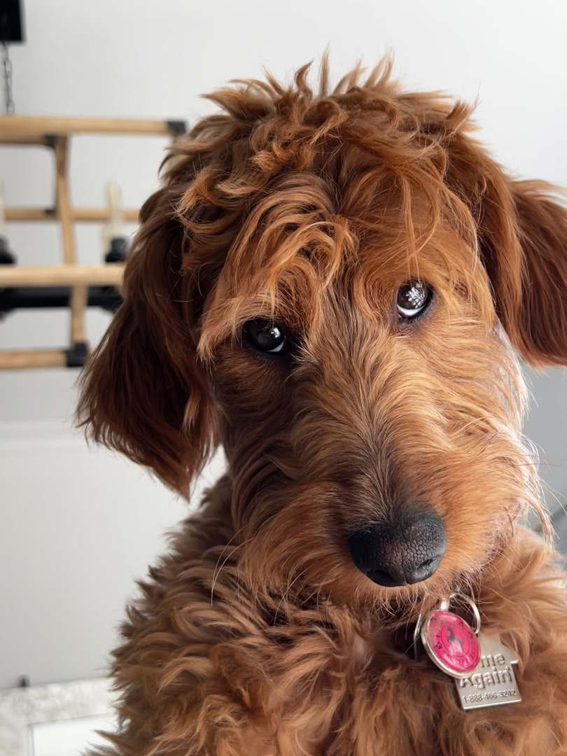 Italia is a 3-year-old red goldendoodle - strikingly beautiful, lightning fast, and the gentlest soul who dreams of catching squirrels.