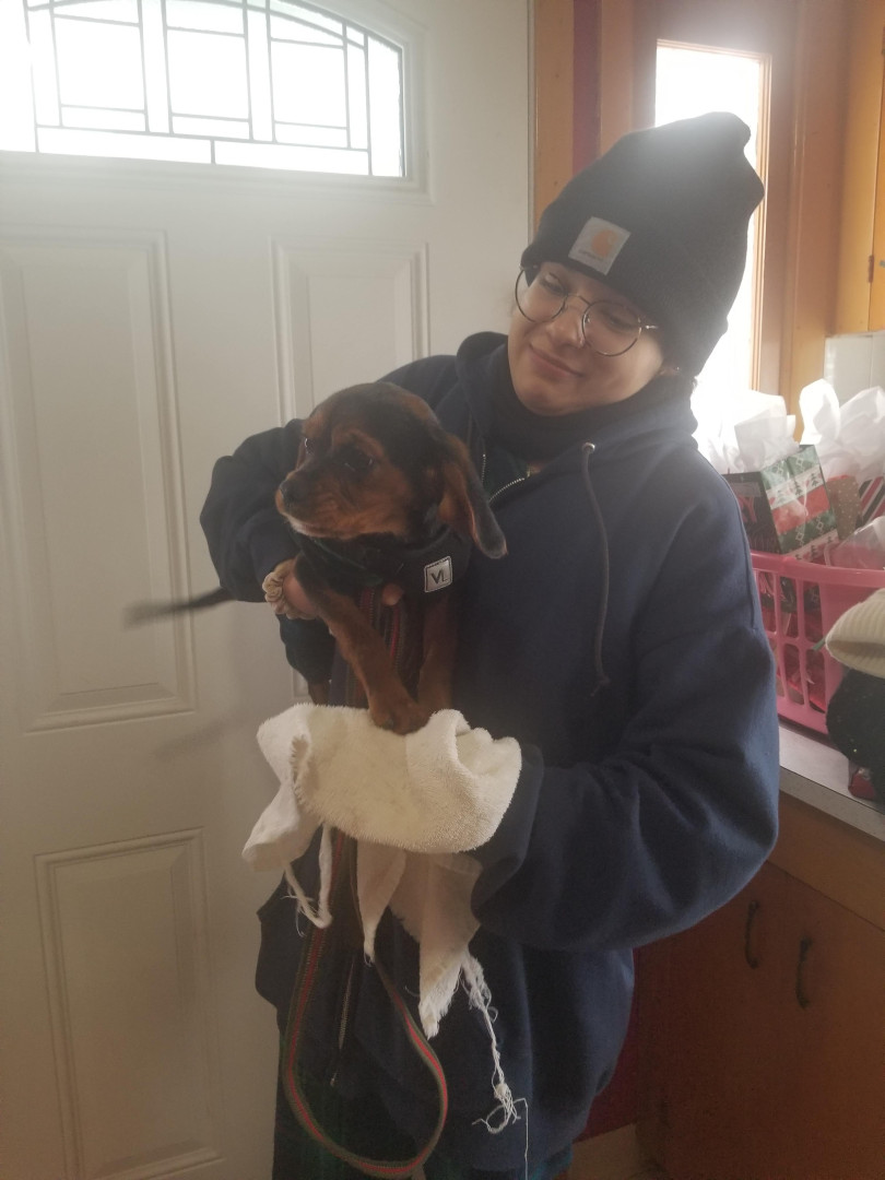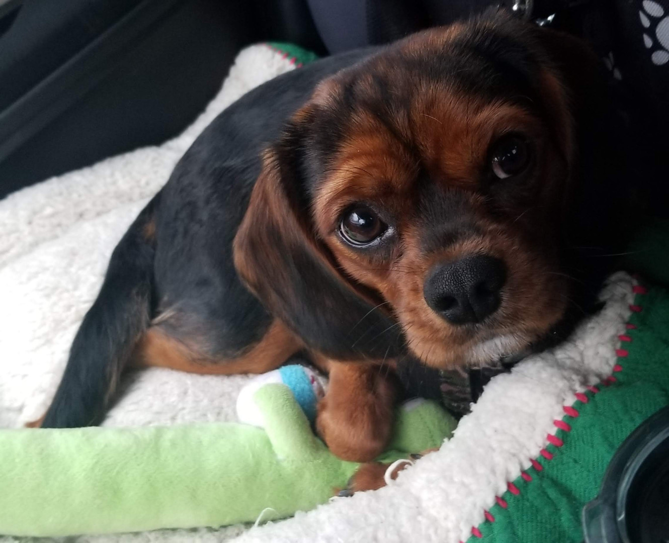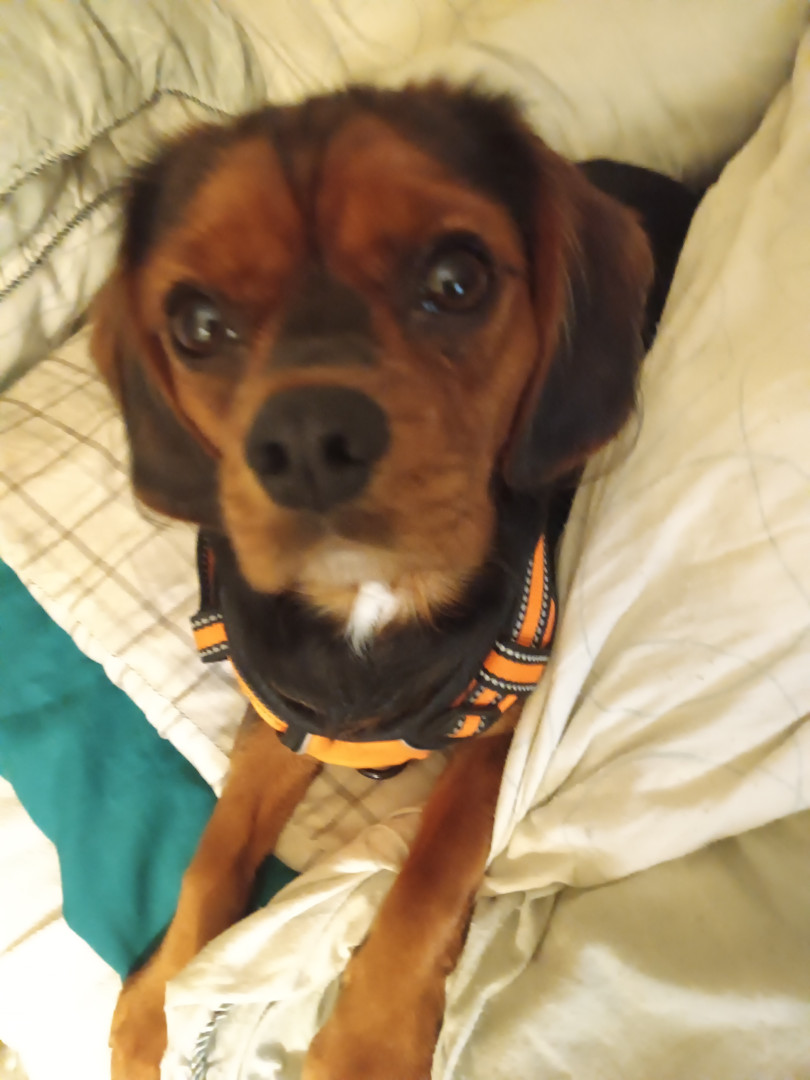 Part king Charles and part beagle. His fur is so soft and has king Charles bark. He has the nose smelling beagle trait and beagle energy.