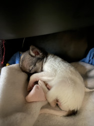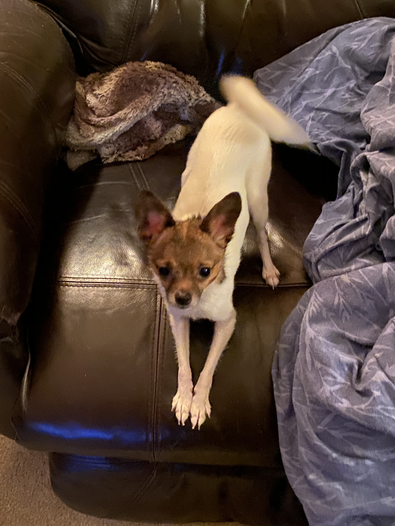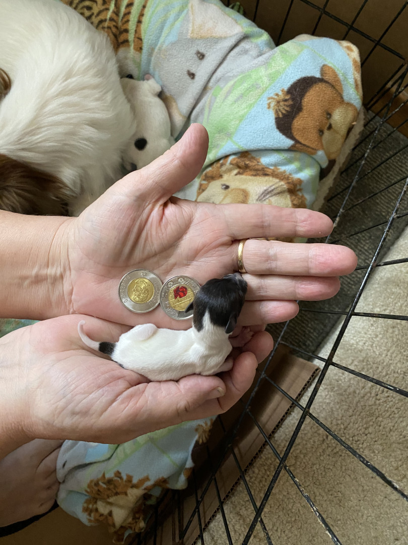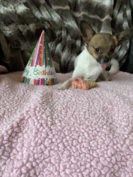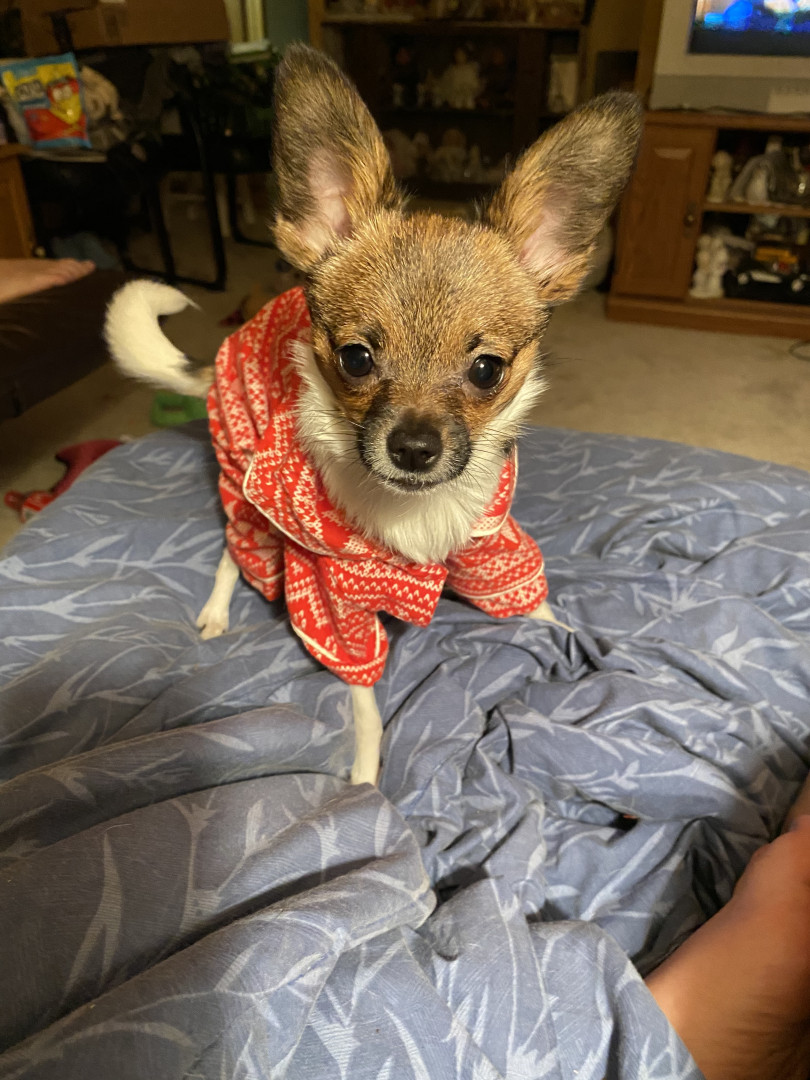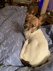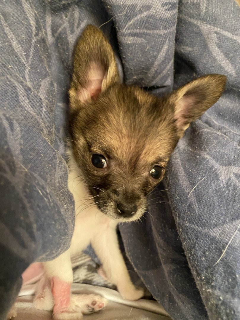 Itty Bitty is an extreme runt. She is a Papillion/Chihuahua cross and is 2.5lbs. But thinks she is the biggest, toughest dog around