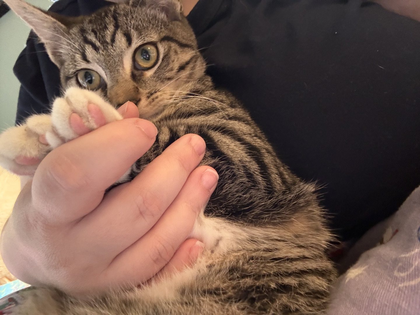 He’s so cute, he has the cutest personality and is so feisty sometimes but he’ll wake you up by tapping your forehead and kissing you.