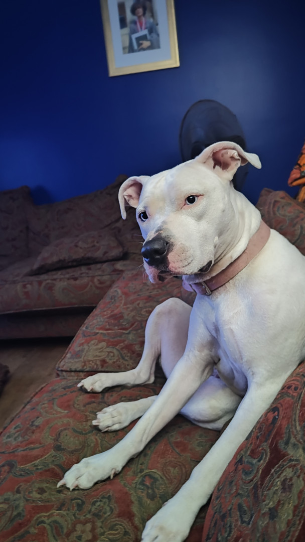 Because for one she is so beautiful and she will pose at any given moment,then she will give us the stink eye when she feels we are doing the most.She is very protective of us and we know that we can count on her to look out for her family.She loves to snuggle and run full out to play and stop on a dime and turn to give us the look like did you see that grandma.