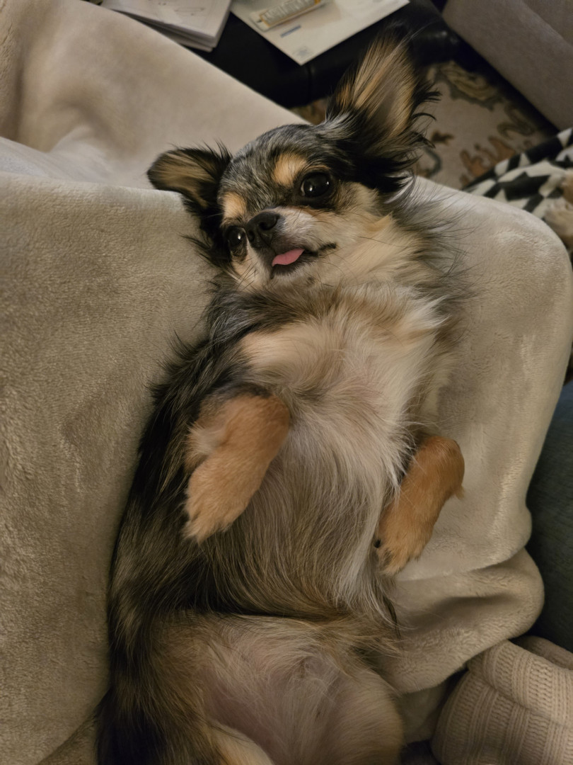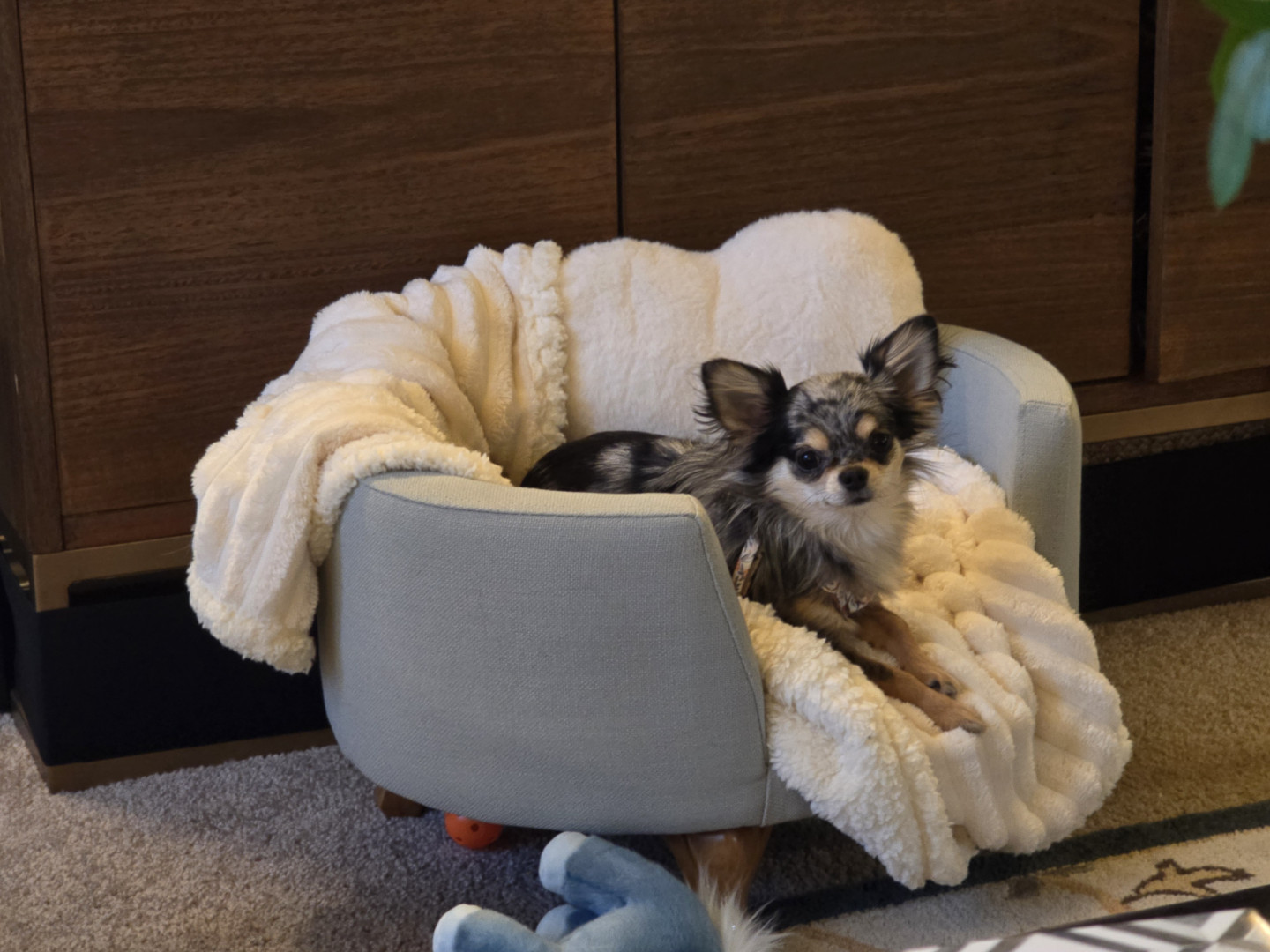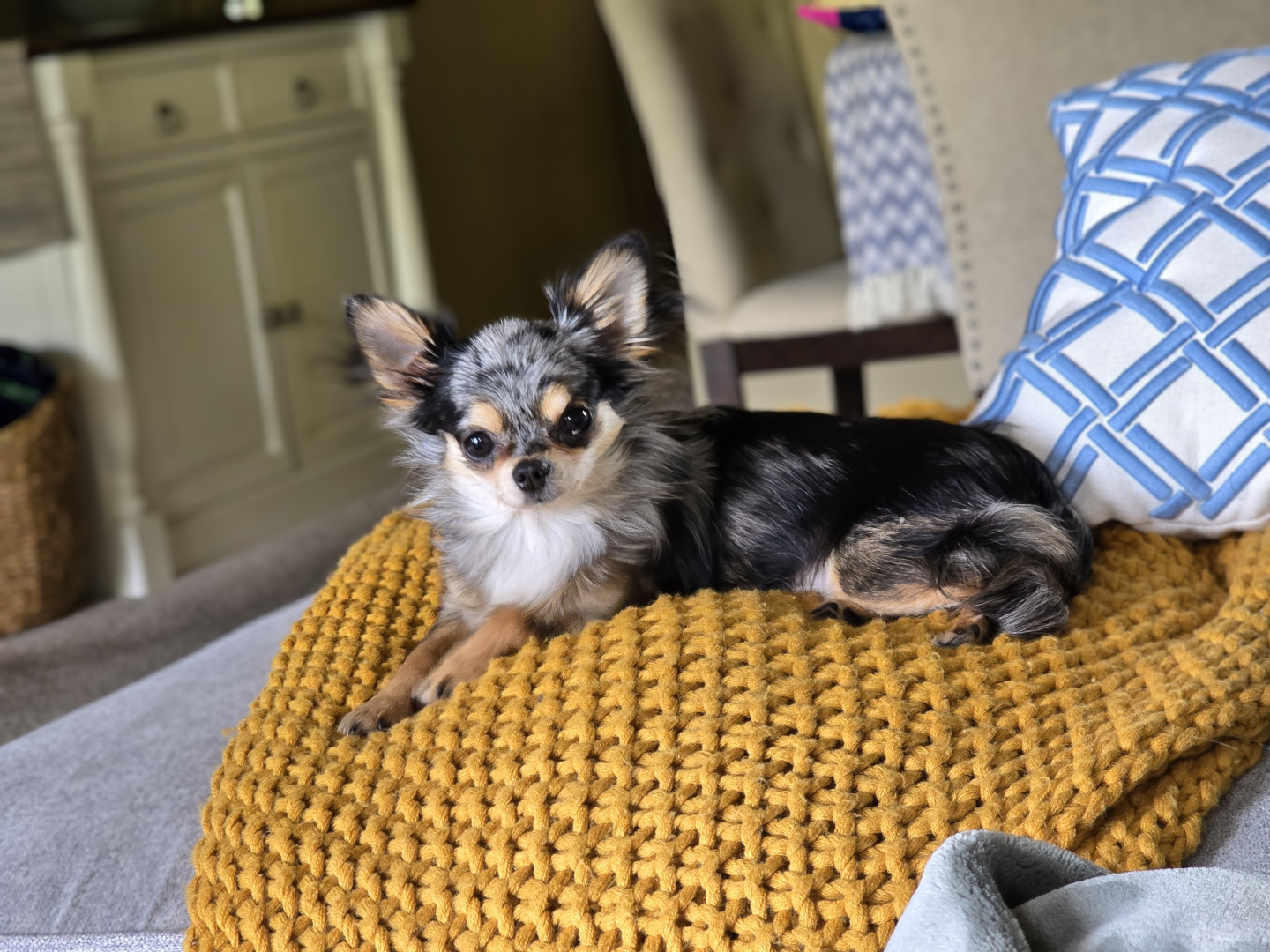 Ivy's little tongue peeks out of the side of her mouth almost constantly, giving her the quirkiest, most endearing look, especially when she sits like a proper little lady with her paws crossed. But Ivy’s most unique quality is her irresistible mix of sweetness and charm, always ready to give endless kisses and cuddles.