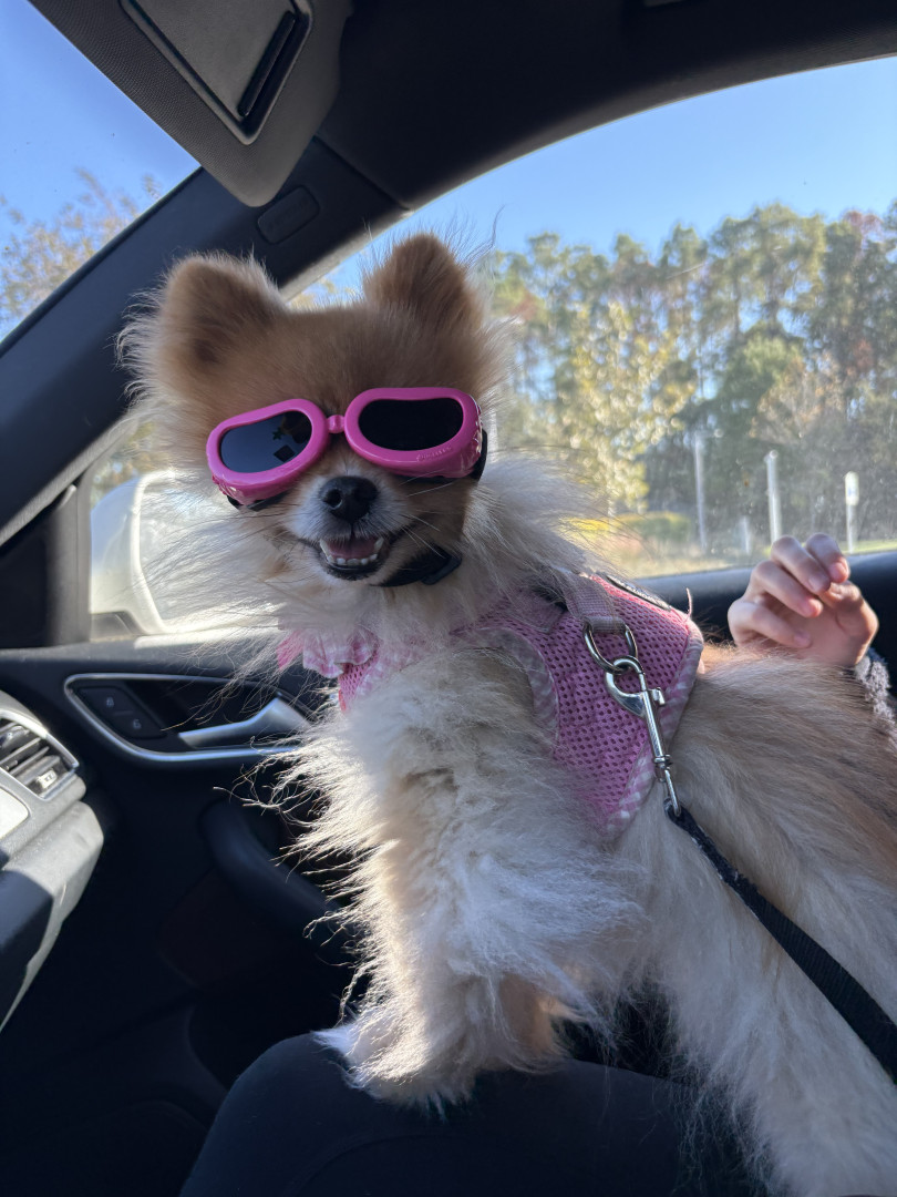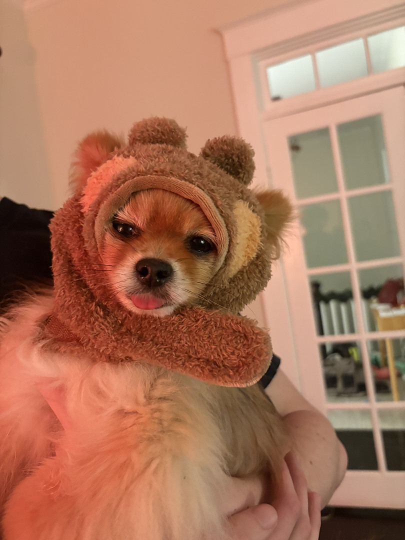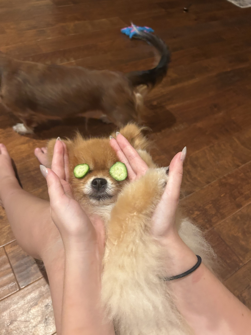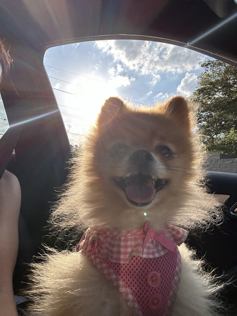 Ivy is a 7 year old Pomeranian who loves car rides and dressing up! Her favorite foods are eggs and cheezits!