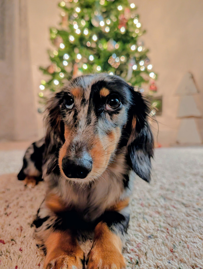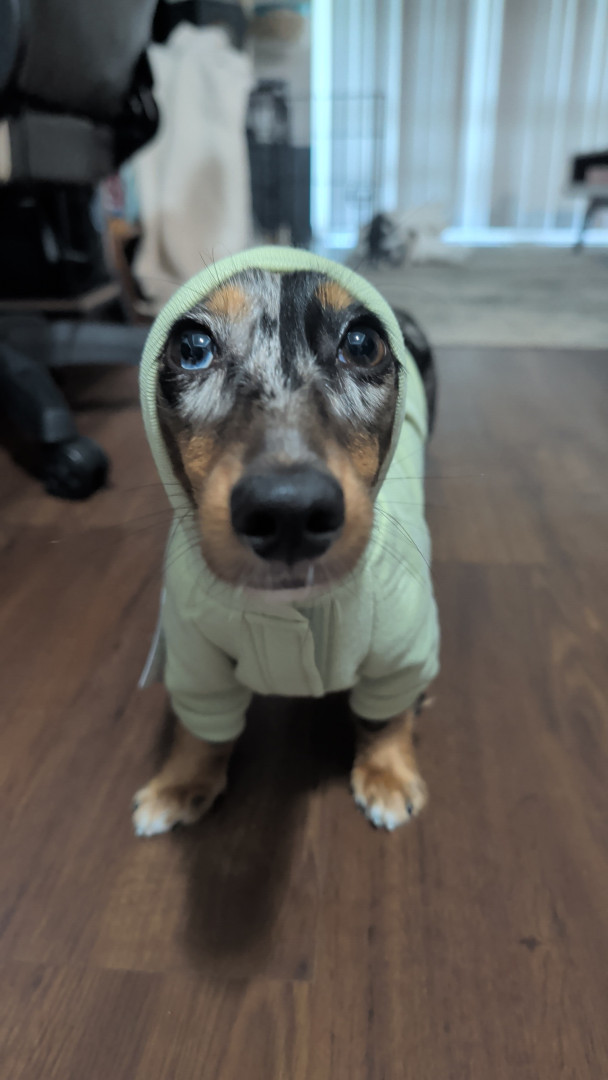 Overall look her unique dapple color and blue and brown eyes!