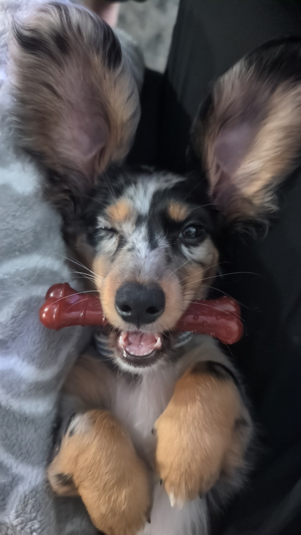 Learn MoreIvy loves anything that squeaks and loves to take her step siblings ( our cats ) toys. Her favorite treat is getting a pup cup anywhere she can!