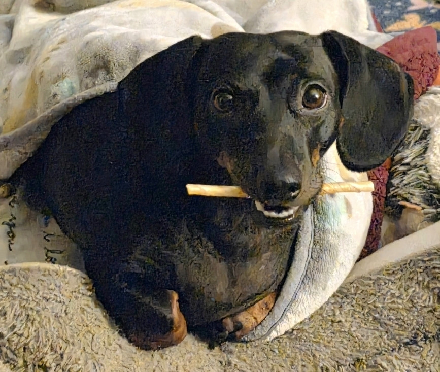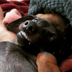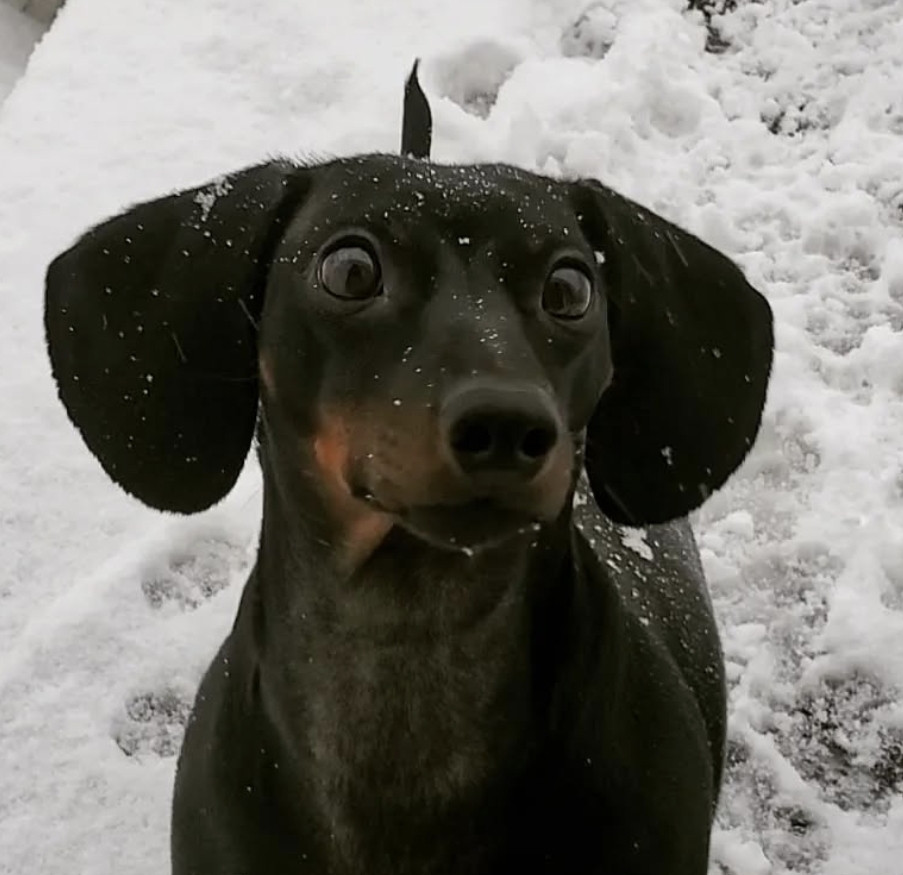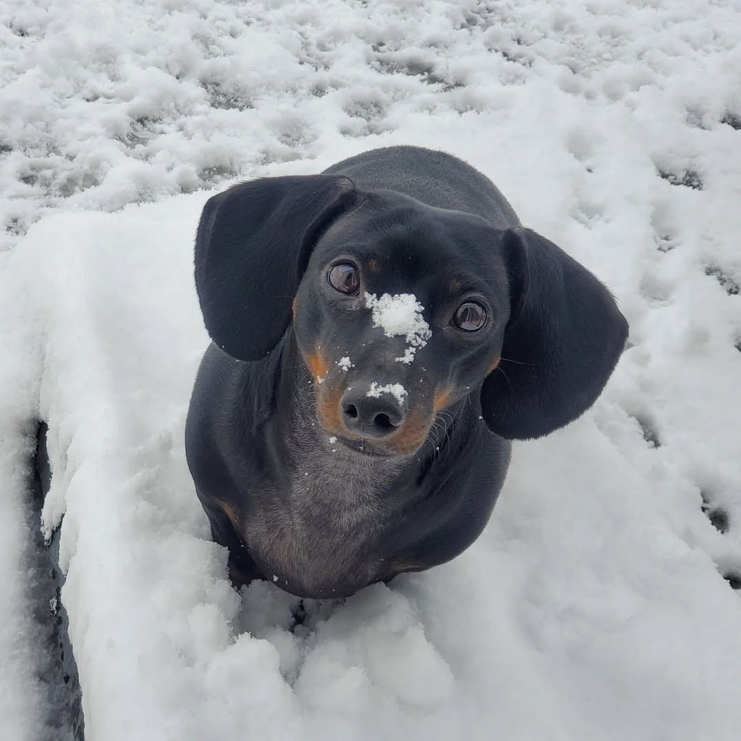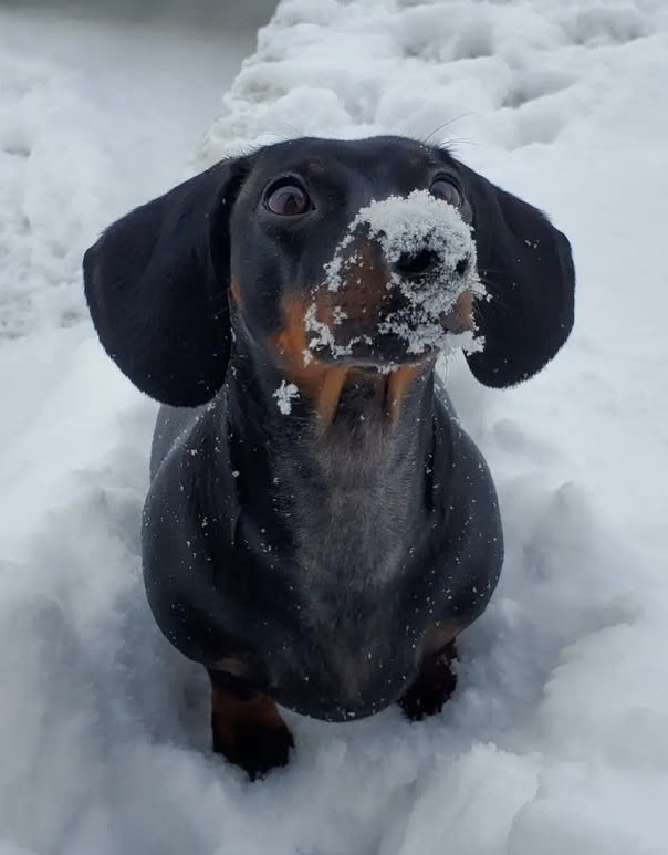 Ivy is a playful, sometimes chicken, crazy girl that loves to destroy any toy that has a squeaker. She loves the snow and loves to run.