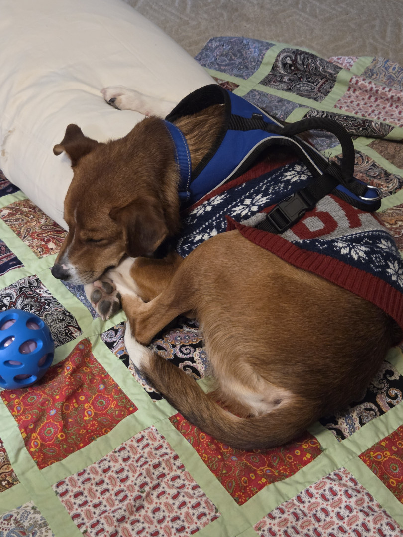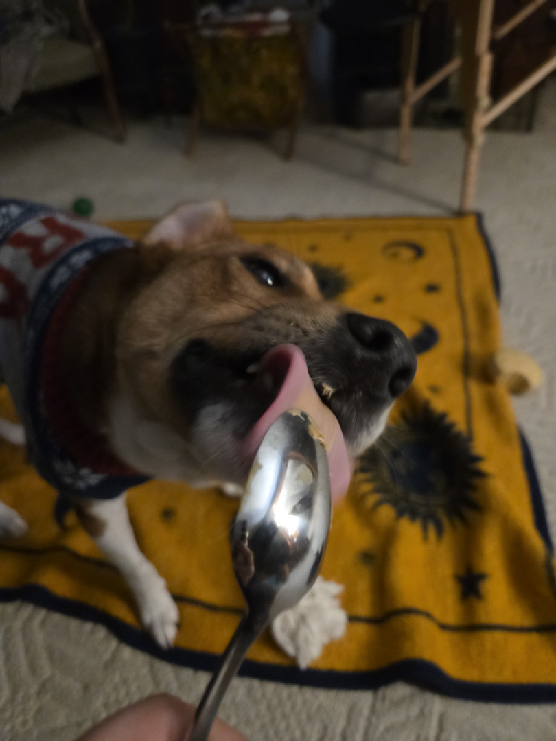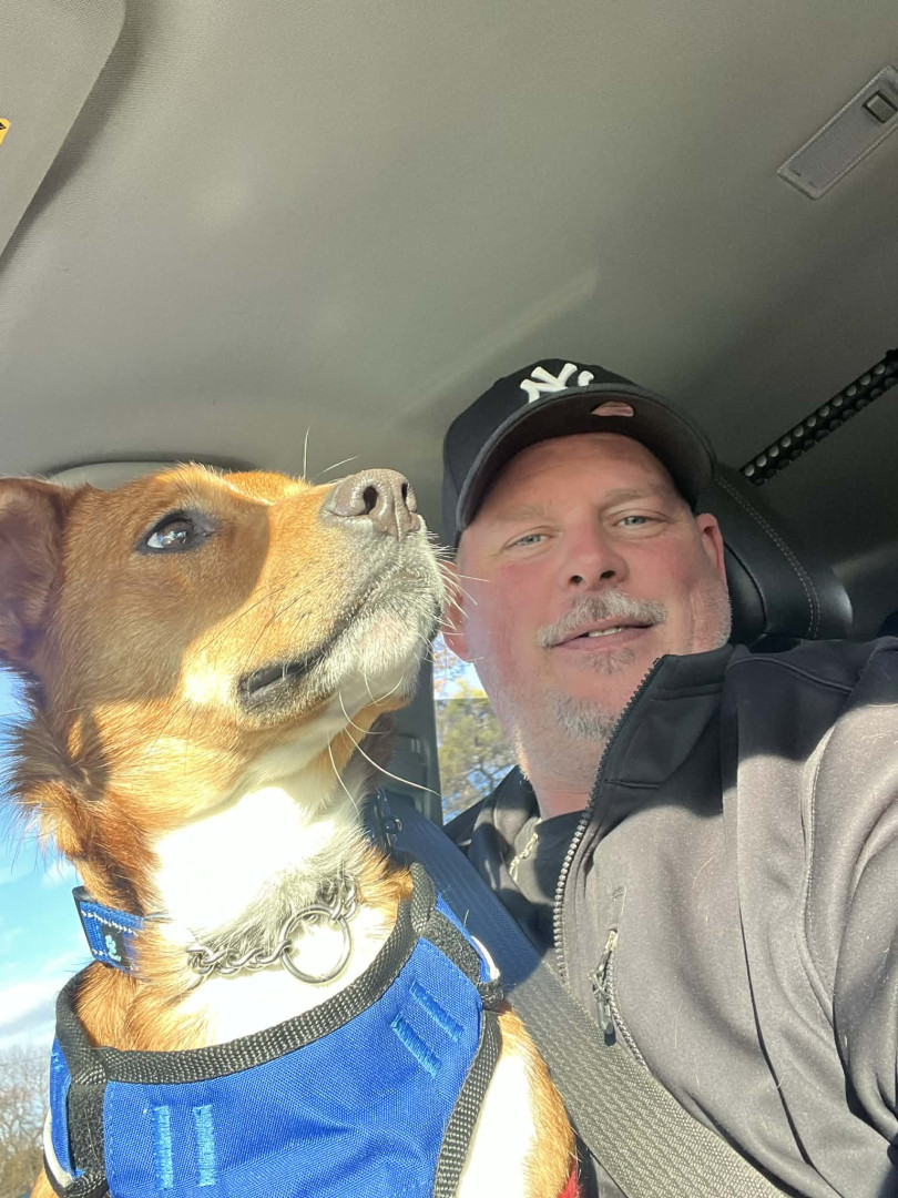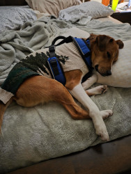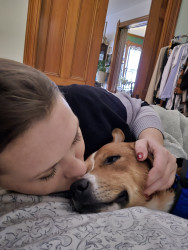 Jack is a 1.5 year old lab and beagle mix that I adopted on 12/12/2025. He is very sweet and loves to play, snuggle, and give hugs.