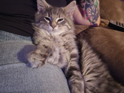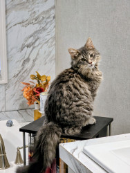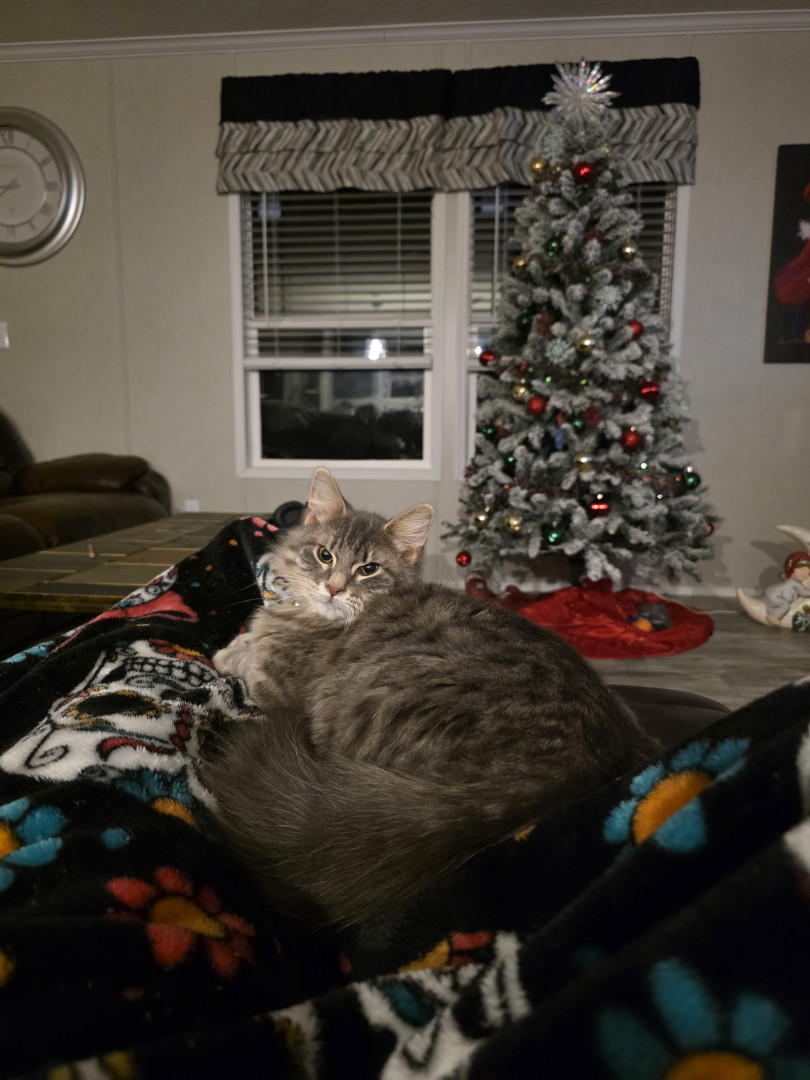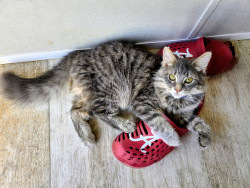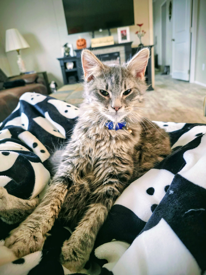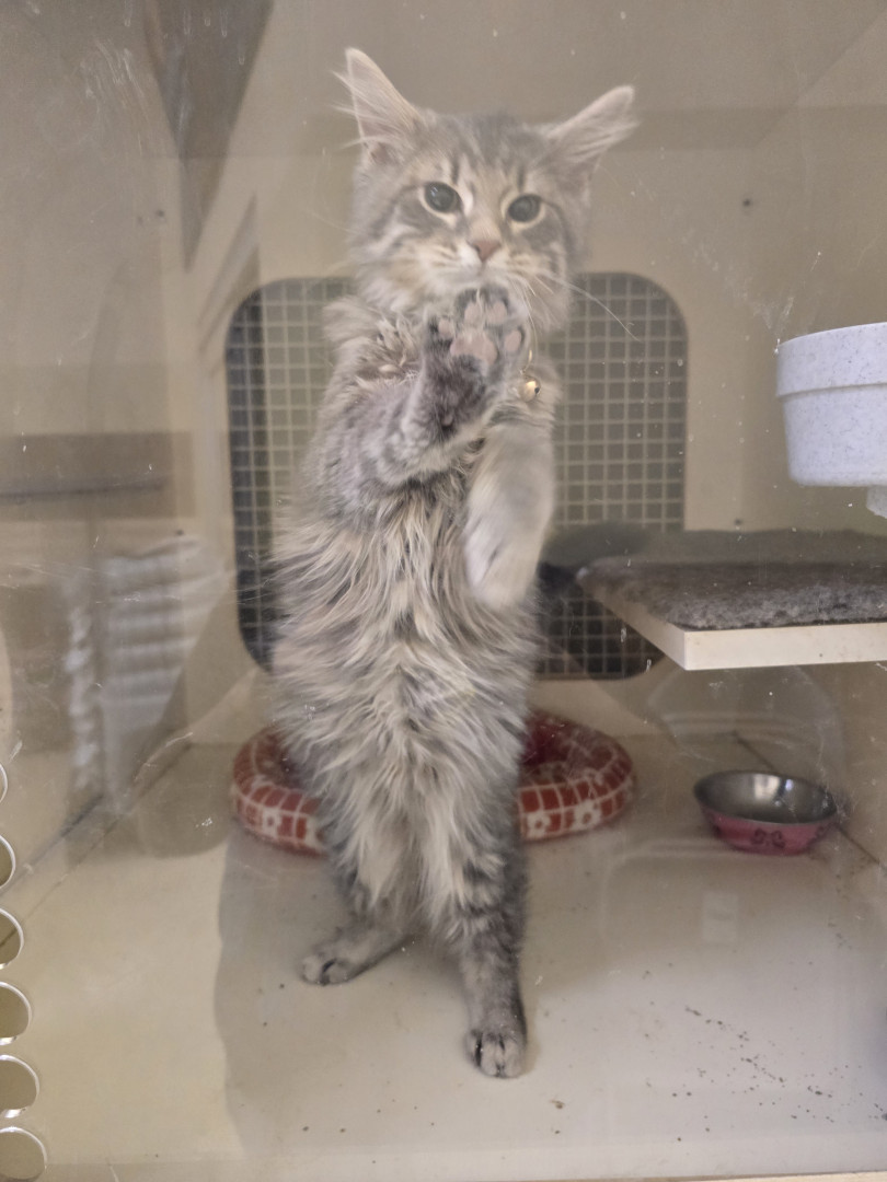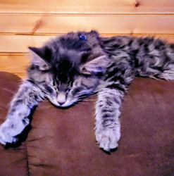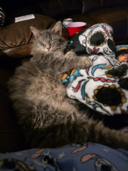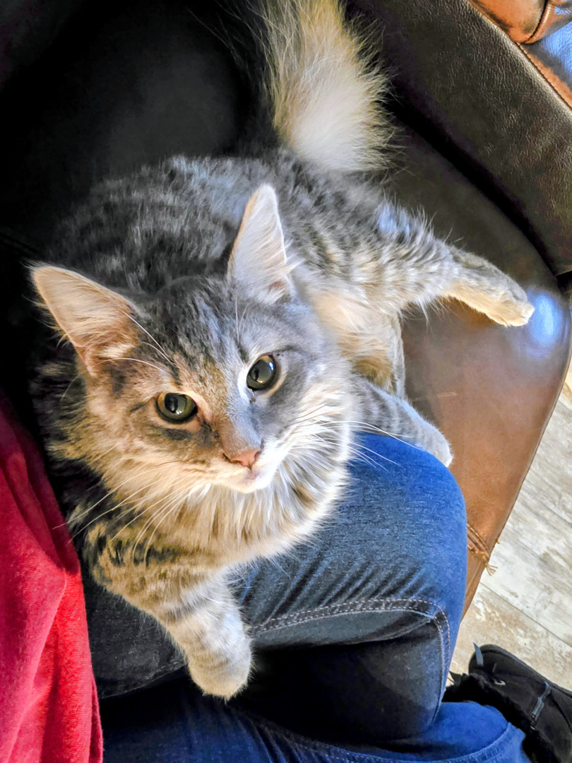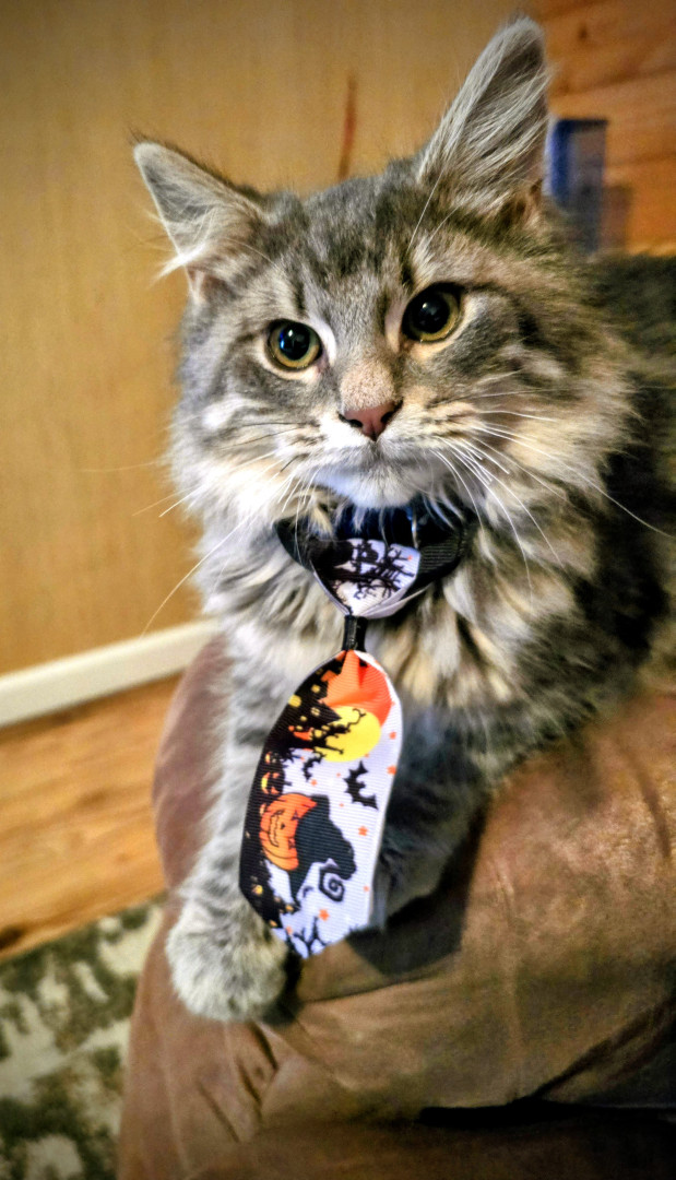 Jack Sparrow is a rescue baby. He is part maine coone. He is a big ball of energy and fur! He loves attention and cuddling.