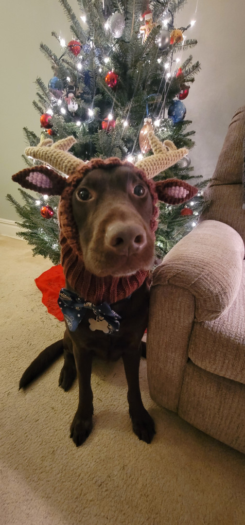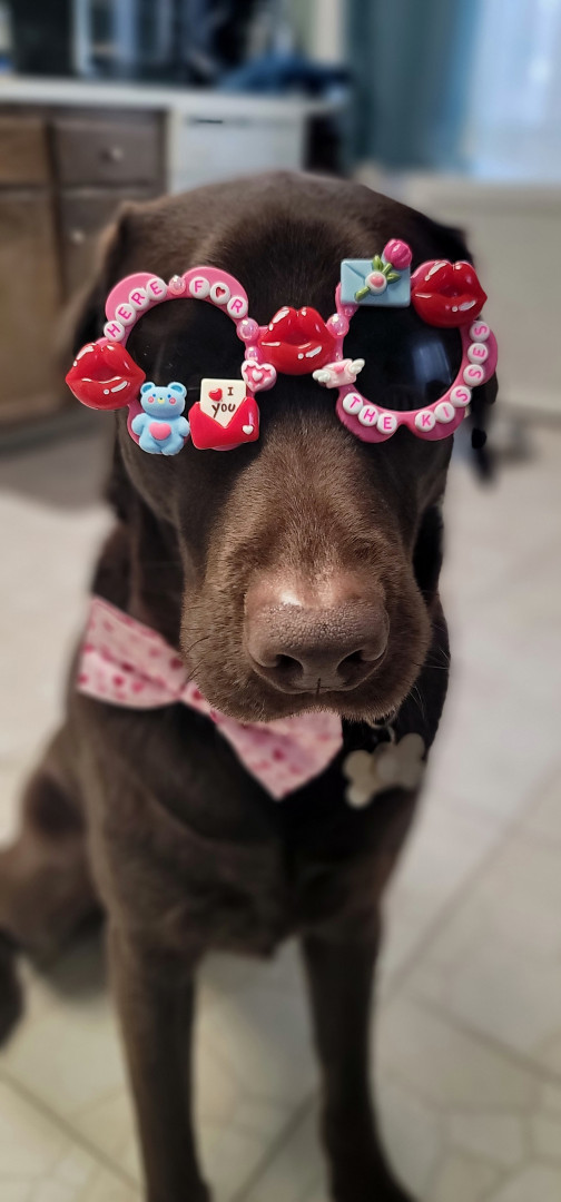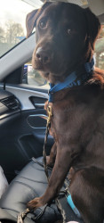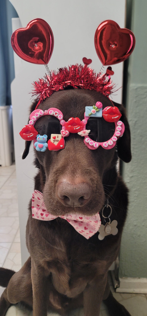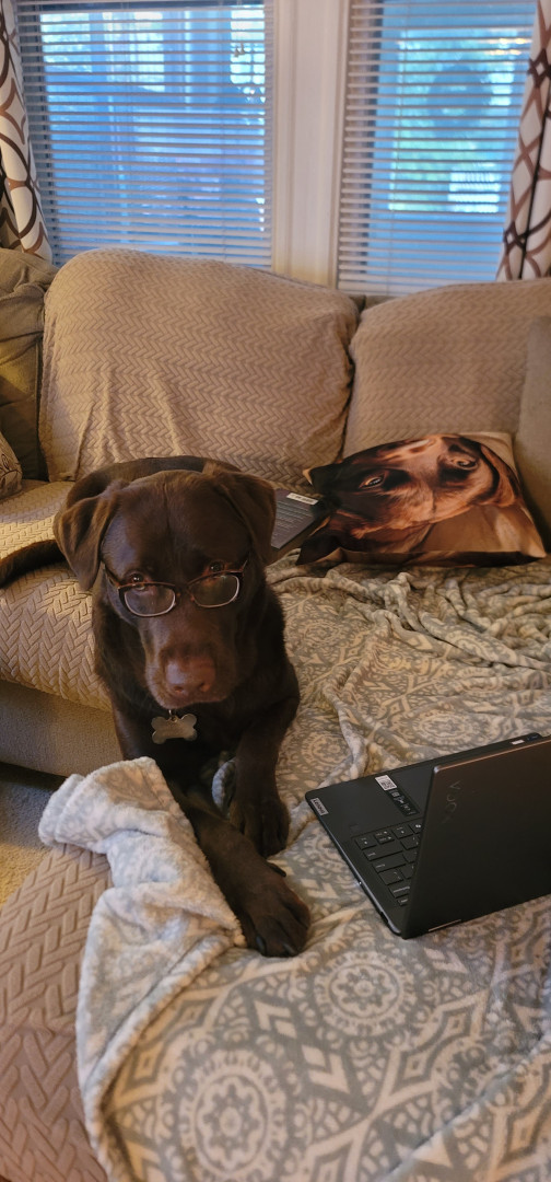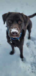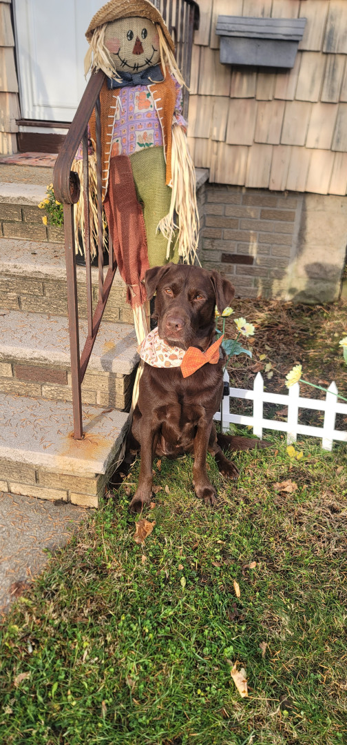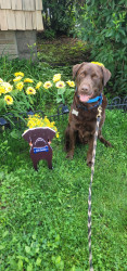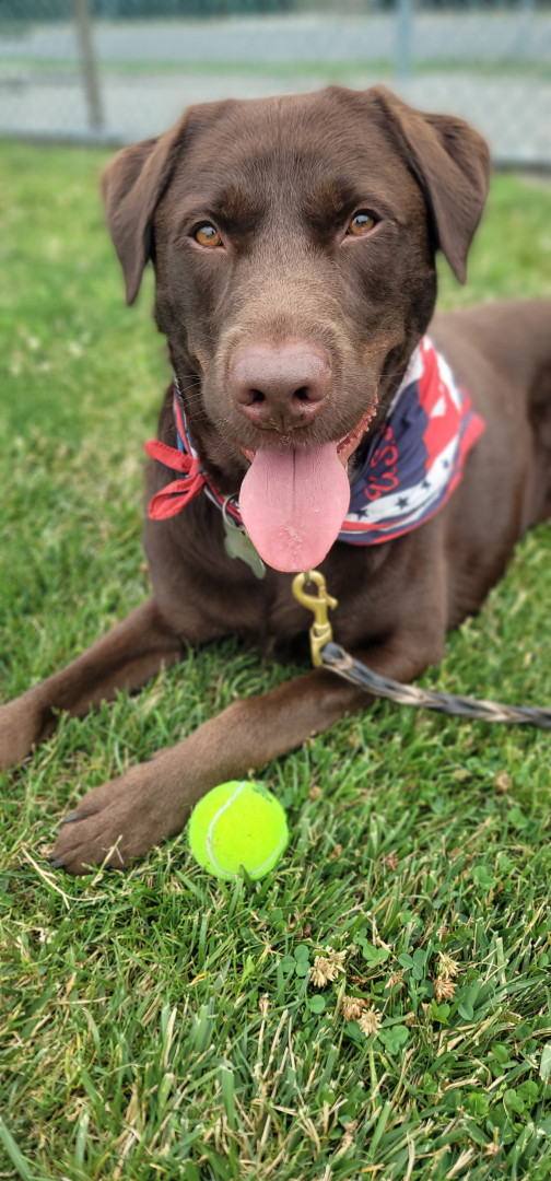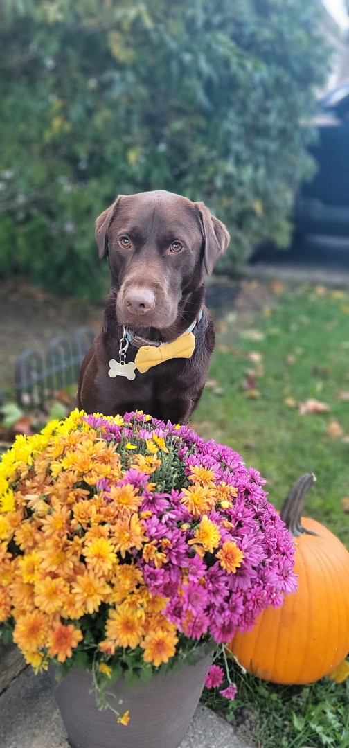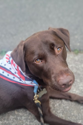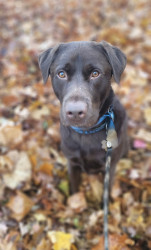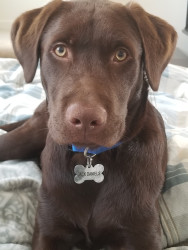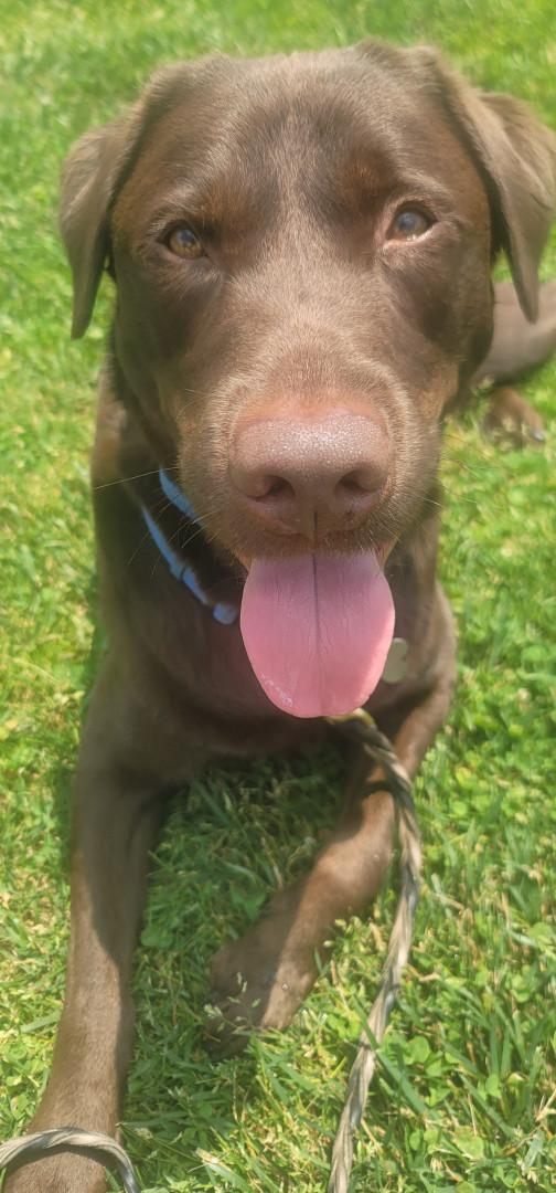 He is a chocolate labrador that LOVES people and making friends. He has lots of energy so loves his long walks around the neighborhood.