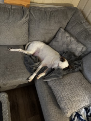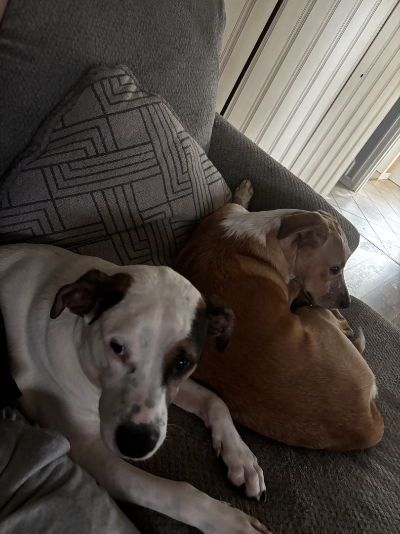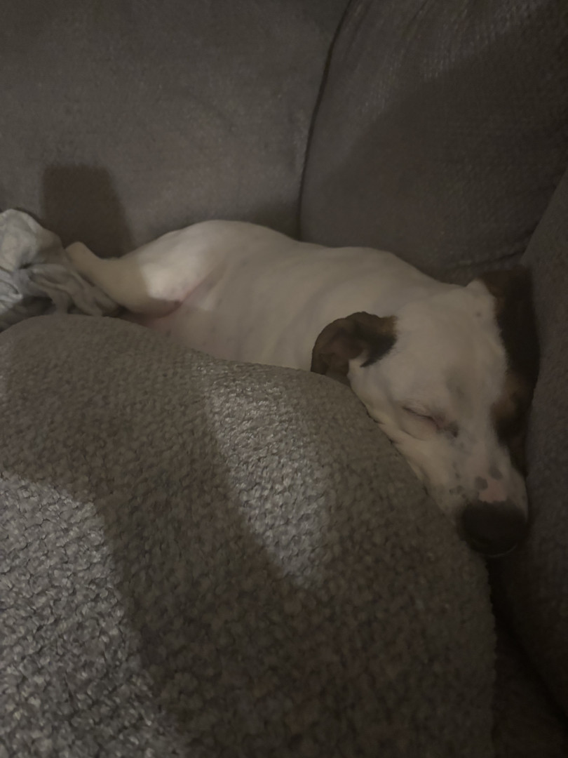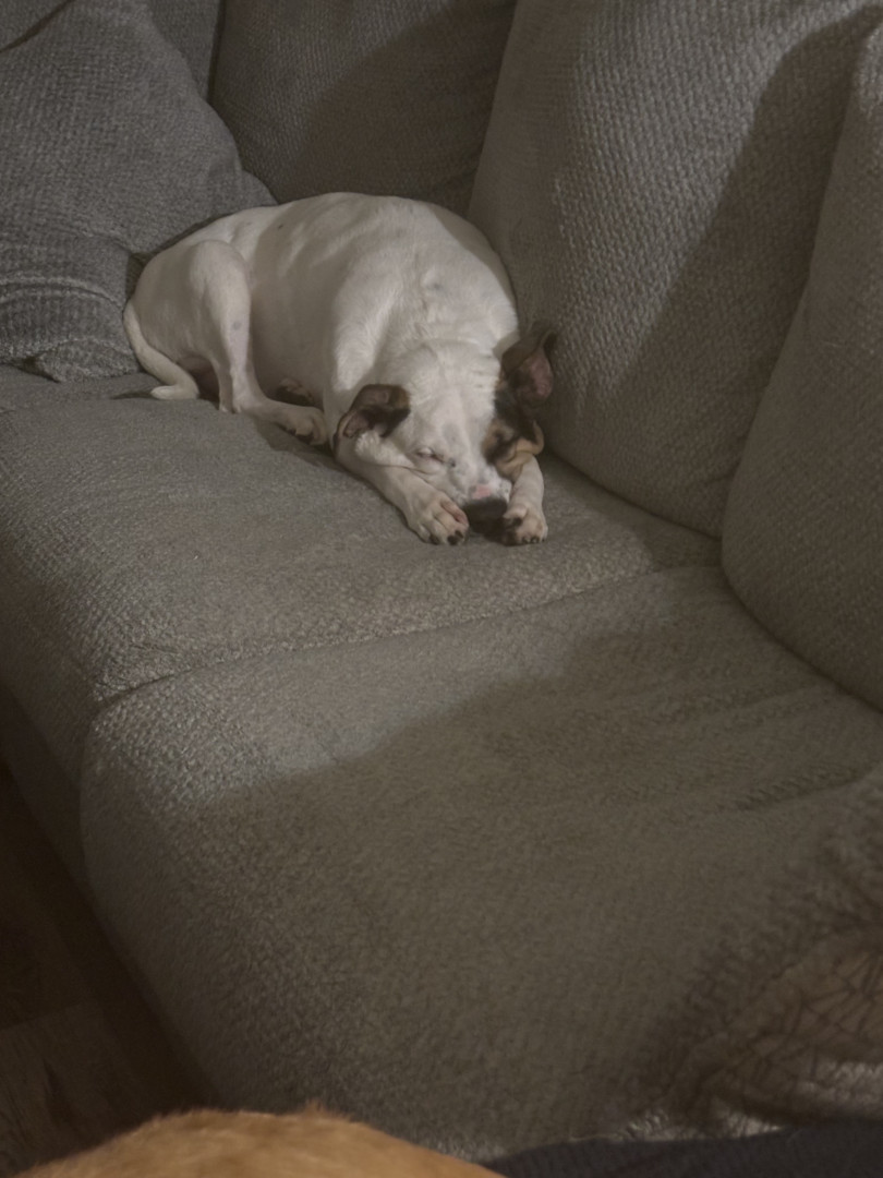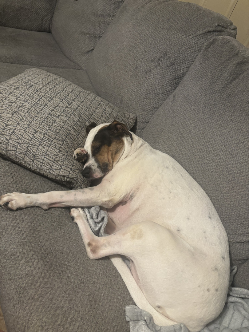 Jack is a Jack Russell–Pit mix, the sweetest, most loving dog who loves sleeping and cuddling in cozy blankets.