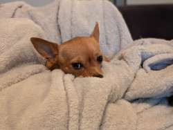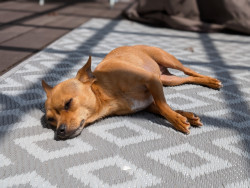 She's small, spunky and fully committed to giving every rug and blanket "the business". She takes the job seriously and never skips a shift.