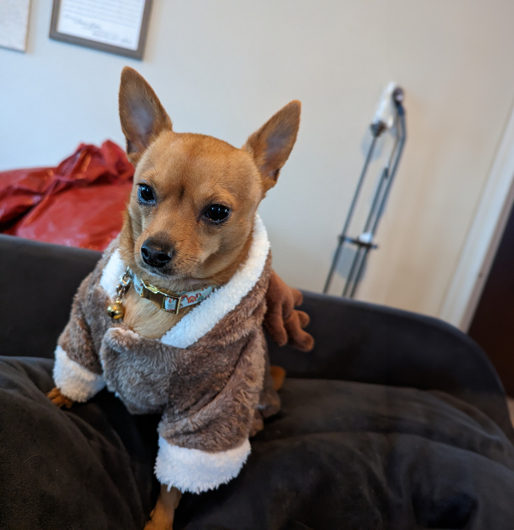 Jalapeño Brownie is equal parts sweet and spicy. She spins and prances like she’s always putting on a show and can be snuggly as well.